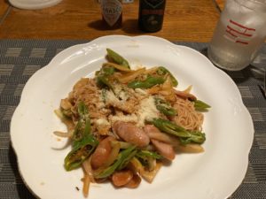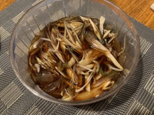 2023年8月28日blogyoko 酒のつまみに お昼が遅かったので、メイン料理は使らずに 冷蔵庫から残り物を出しただけの夕食。 相棒からのリクエストで作ったのが 茗荷とニンニクと青南蛮の醤油漬け。 酒のつまみに最適です。 私は細いパスタが残っていたので在庫処分の ナポリタン。 ショールームで歩き回った疲れがどっと 出てきていま〜す。