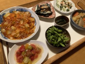 2023年9月27日blogyoko 偏ってきそう ジムから8時前に戻り夕食準備。 エビチリだけ作って、あとは残り物です。 食品庫をのぞいたり、冷凍庫をのぞいて 準備しています。 あとは畑の野菜で。 でも買い物せずにしているので、そろそろ 偏ってきそうで難しいで〜す。