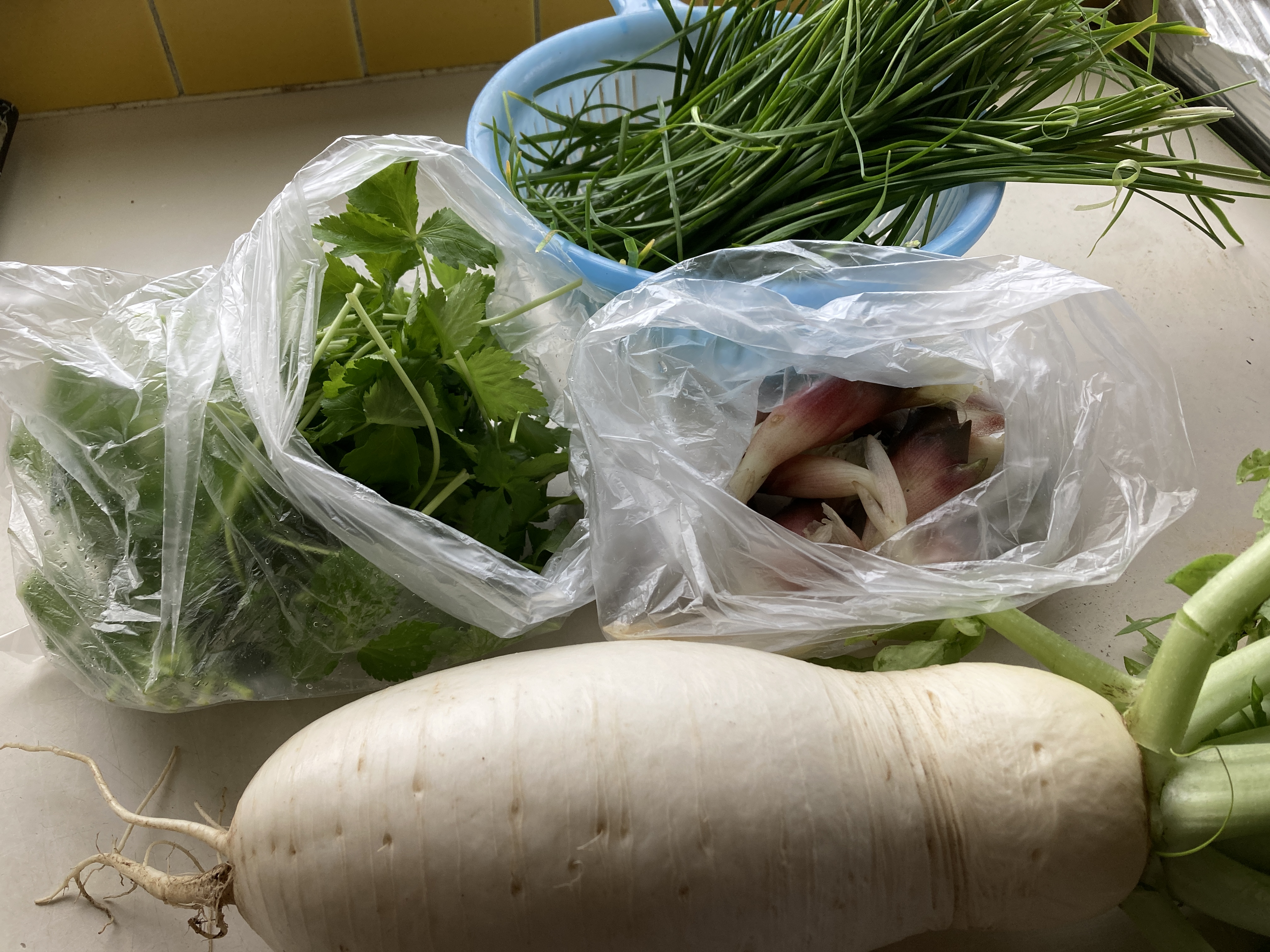 2023年10月30日blogyoko 鍋料理は 我が家の初大根、おでん大根を1本抜いて 来ました。 あとはニラとミツパとミョウガ。 大根はおでんに。 白菜はまだ収穫ができないので 鍋料理はもう少し我慢で〜す。