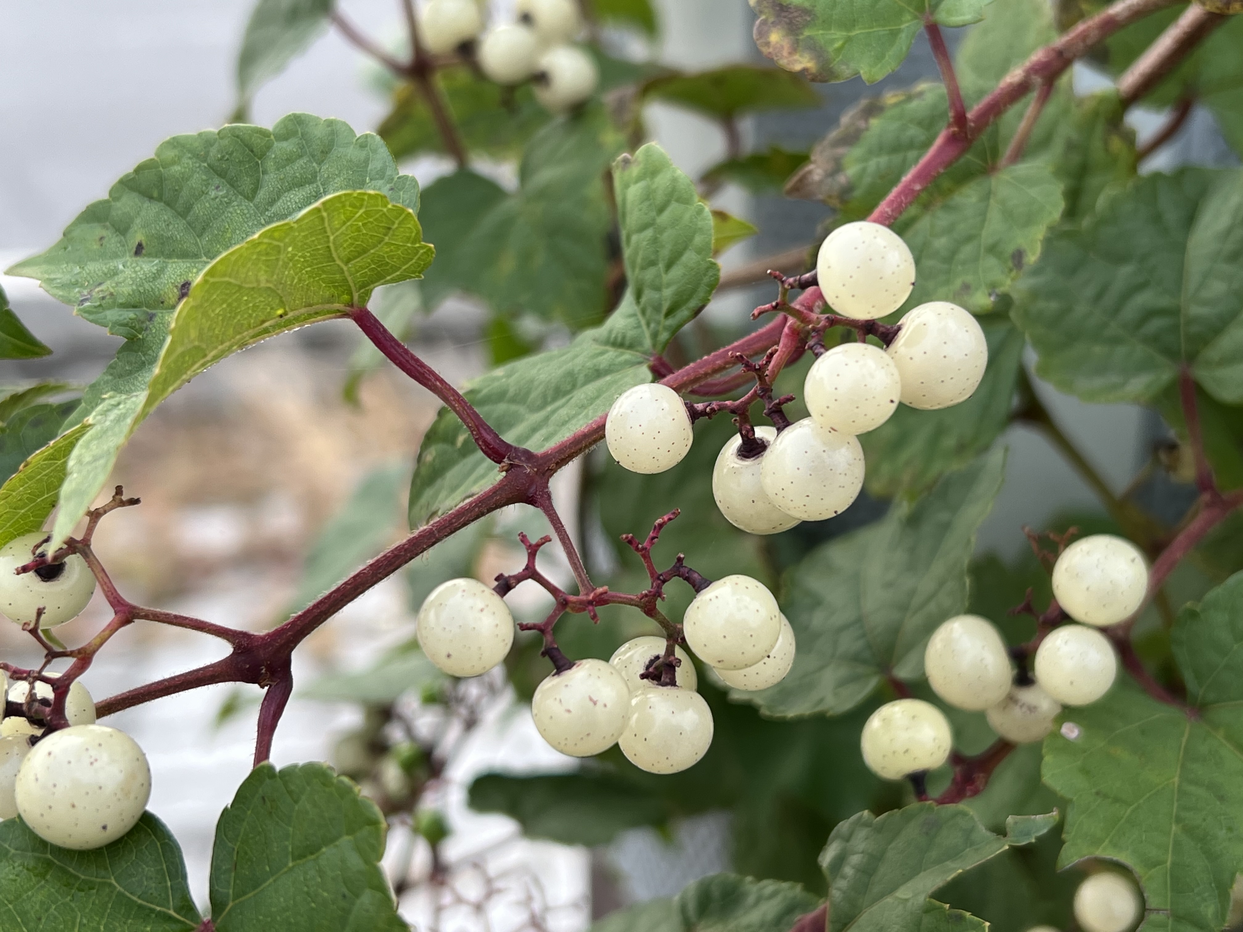 2023年10月25日blogyoko 暖かく 月が綺麗だったのでパチリ。 野葡萄が朝露に濡れて綺麗です。 霧がすごいですが、散歩をしている方達の 話声や挨拶が飛び交っています。 今日は早くから晴れ間が見えてきているので 暖かくなりそうで〜す。