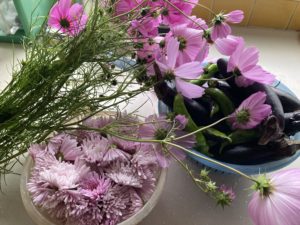 2023年10月25日blogyoko 飽きて 畑へ二人で収穫です。 私はもってを摘んで、相棒は茄子や万願寺。 コスモスがまだまだ咲いています。 来週からは菊が飾れそうな感じで蕾が たくさんついていました。 茄子漬け大好きですが、あとは茄子料理 そろそろ飽きていま〜す。