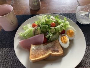 2023年10月24日blogyoko 飽きました 今日もワンプレート。 たった二日だけなのに生野菜はいいんだけど 食パンが飽きました。 若い時はパン大好きだったのに、今は ご飯と味噌汁の朝食が好きになっています。 これもやはり歳のせいでしょうね。 当分続くだろうと思っっていたパン食ですが 残りご飯もあるので、明日は白粥にでも しま〜す。