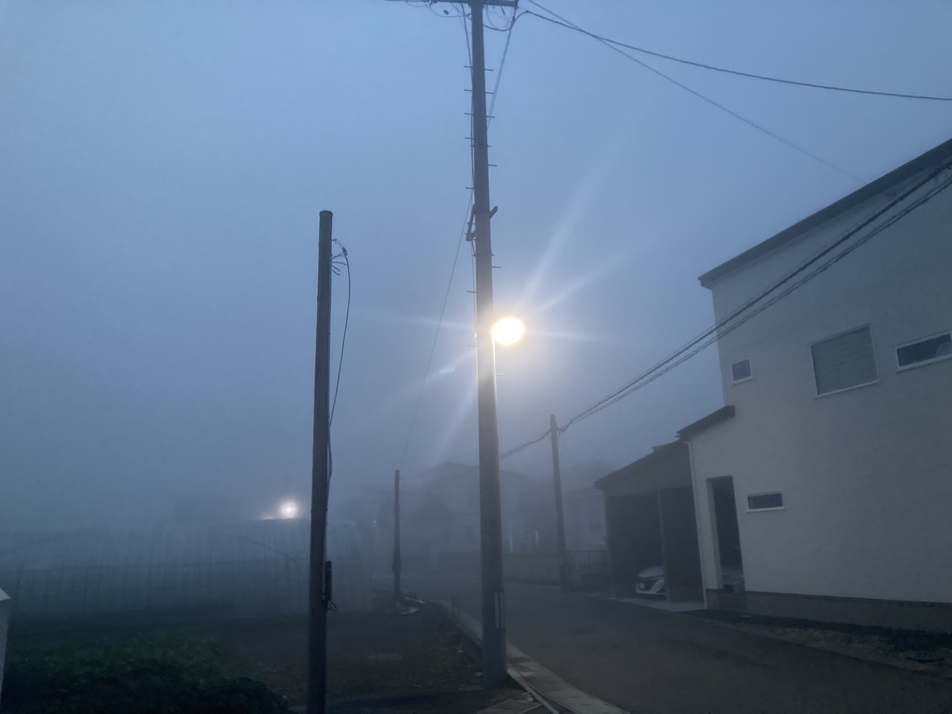 2023年11月1日blogyoko 濃霧 今日もすごい濃霧です。 突然、濃霧の中から人が出てくるとびっくり です。 その方も私がパチリしていてドキッとしたと 思います。 今日も天気が良くなりそうで〜す。