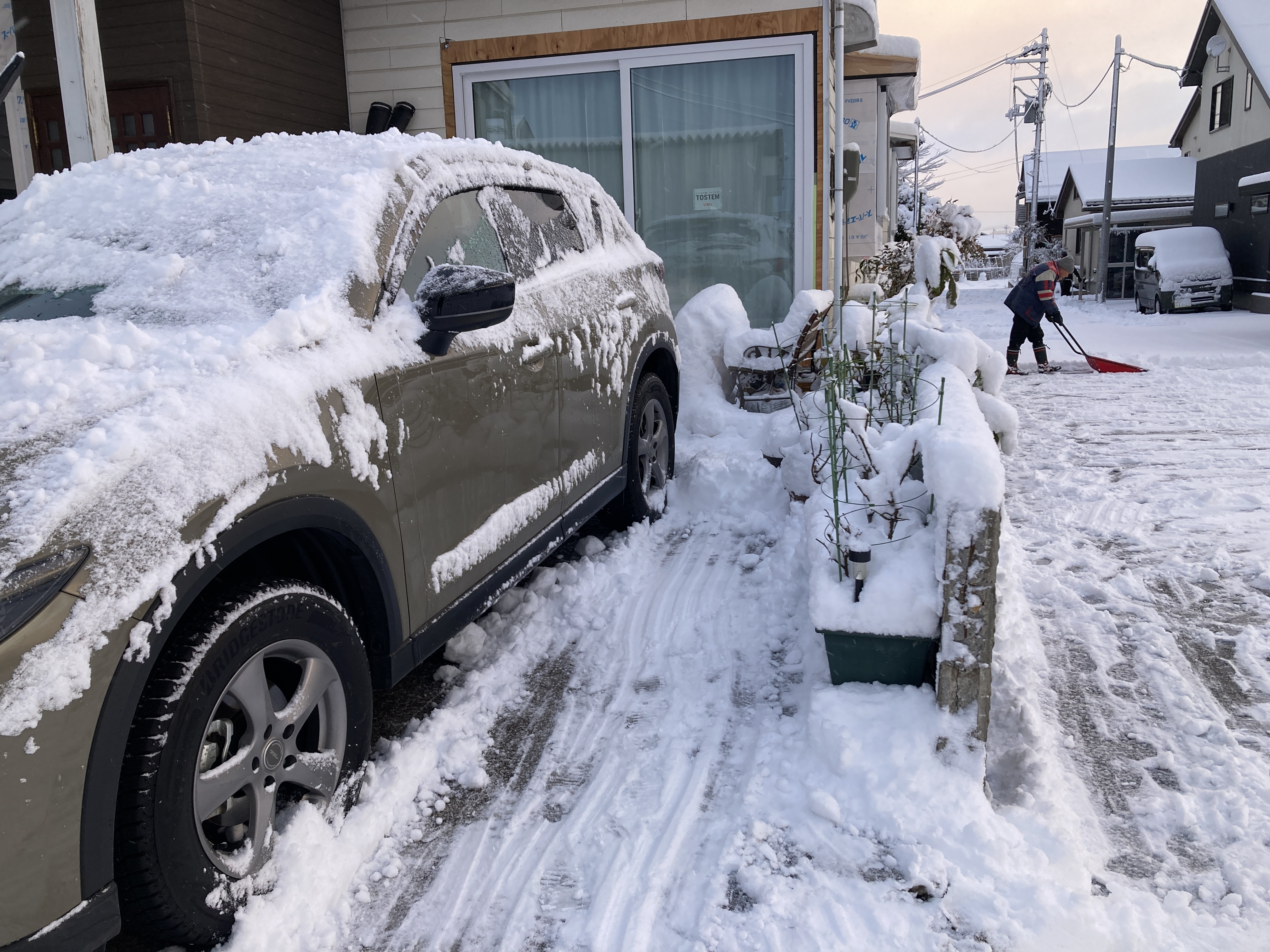 2024年1月25日blogyoko 井戸端会議 玄関先へ除雪機があると大工さん達の邪魔に なると思い出していないので、相棒今日は ダンプで除雪です。 ですが、中々戻らないので見に行くと 道路で近所の方達と井戸端会議で〜す。