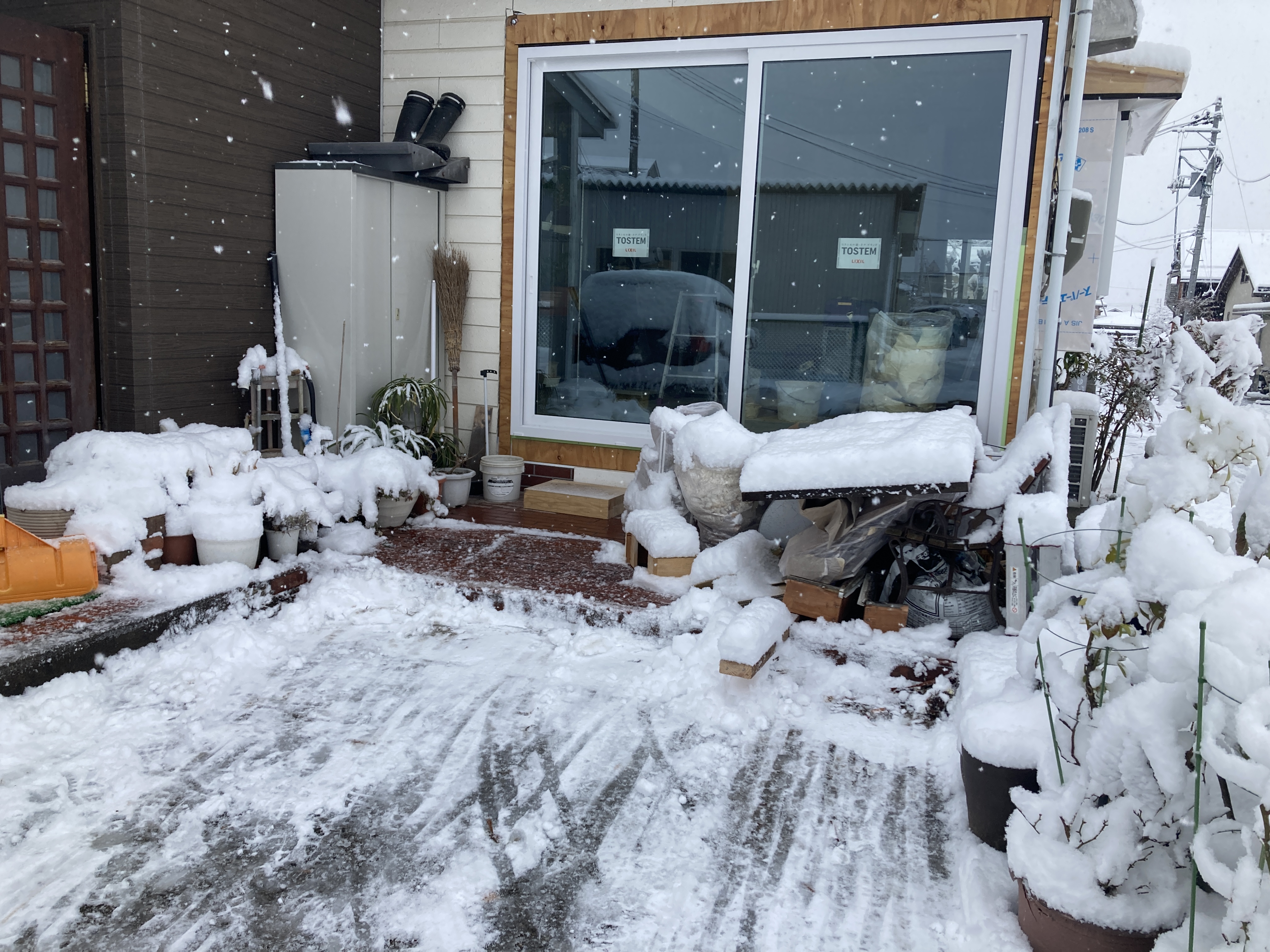 2024年2月6日blogyoko 今一番 10センチ位積もったでしょうか。 大工さん達が来る前に少しだけ雪かきです。 寝室に篭って何もできない状況ですが 朝、雪道を運転して事務所へ出勤しなくて いいのが、今一番幸せで〜す。