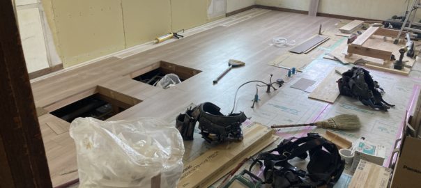 2024年2月7日blogyoko 無駄な 台所の床が貼られました。 工事は進んでいるけど、工程通りは いかずです。 新築と違ってリフォームは色々大変な 様子ですが、私が退職してから数日で 片付け予定でしたが、1ヶ月は無駄な 日々を過ごしそうで〜す。