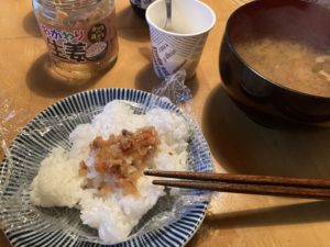 2024年2月5日blogyoko 敬意 日曜の朝食。 相棒はお茶漬けが続いています。 私は生姜をかけて、体の中から温まるように。 5日目の食事もラップ活用で少しづつ慣れて きました。 漬物も袋のままだったりして皿を使わない ようになっています。 こんな生活を1ヶ月以上して非難されている 方達に敬意で〜す。