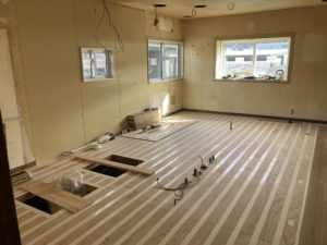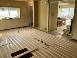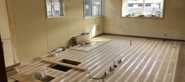 2024年2月5日blogyoko 楽しみ 台所です。 台所から旧和室を。 段差がなくなりました。 食器棚がないと、スッキリワンフロアに なるのですが、とにかく食器があるので 断捨離するにしても同じ所につけるように しました。 と、梁があってこれ以上取れないようです。 台所が出来上がるのが楽しみで〜す。