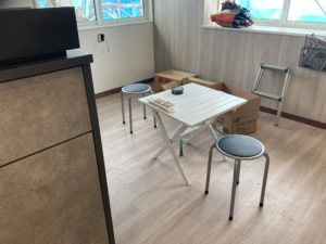 2024年2月24日blogyoko これからは 午前中いっぱいかけて食器類を食器棚へ。 まずは押し込んだと言った方が正解です。 あとは新しい食器を出してきて、随時 入れ替えします。 台所のテーブルがまだこないので、小さな テーブルとパイプ椅子をスタッバイです。 これからはキッチンで食事ができま〜す。