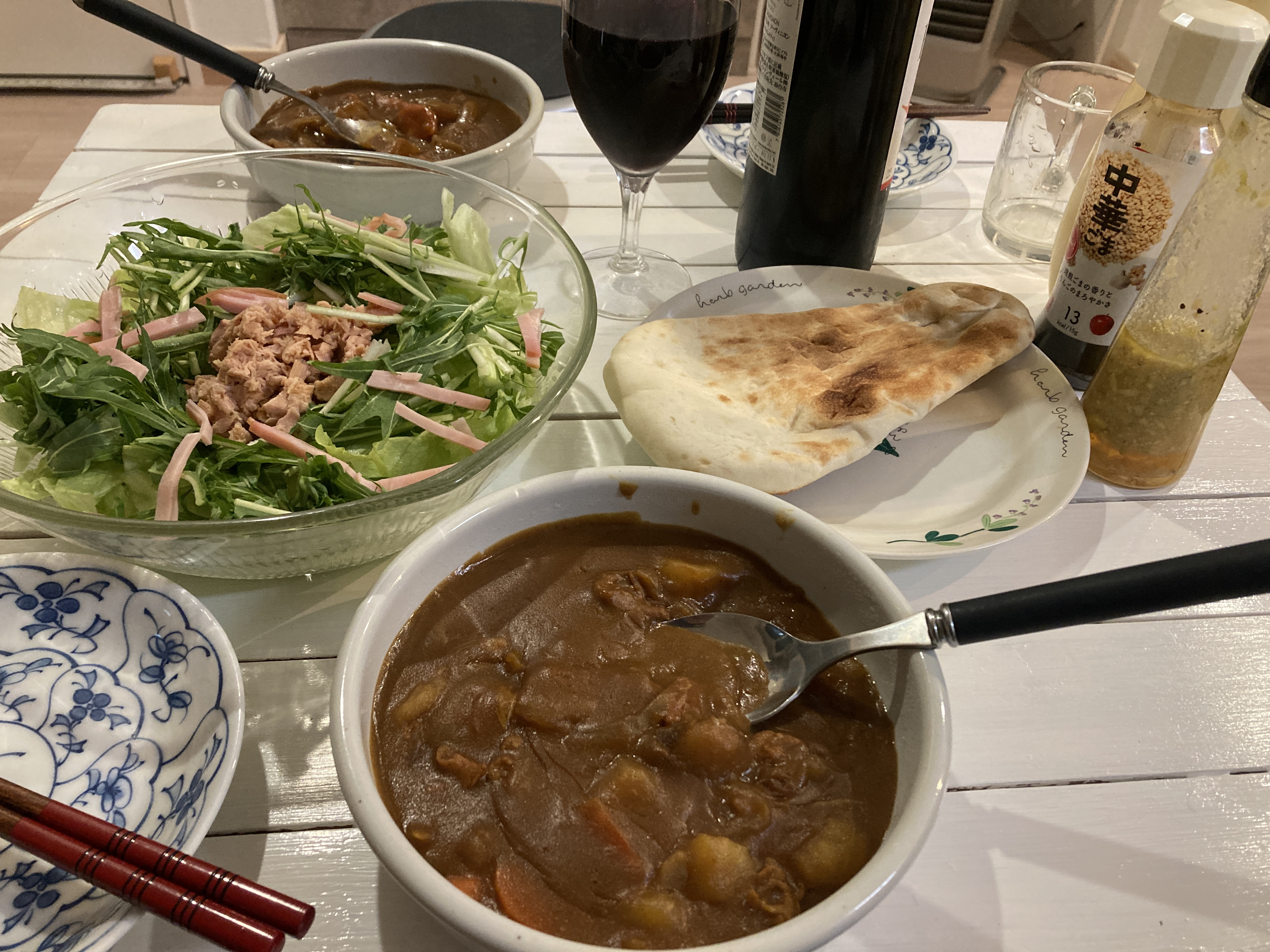 2024年2月24日blogyoko 缶詰の消費 午後からエアコンやテレビ、ブライドを 購入しに行ってきました。 が、ブラインドは2週間位かかるとの事。 エアコン、テレビは少しの間、お店で預かって くれるそうなので月曜日に再度業者さんに 確認してからにしました。 夕食はスーパーでナンを購入してきたので、 カレーにしました。 あとは生野菜にシーチキンのサラダ。 缶詰の消費で〜す。