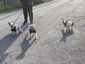 2024年5月30日blogyoko カメラ目線 脹脛がまだ痛いので朝散歩パスの予定 でしたが、天気もいいし湿布を貼って テクテク。 農家さんのハウスの中はトマトもきゅうりも たわわです。 さすがプロです。 トラクターと新幹線。 可愛い3匹の犬がカメラ目線で〜す。