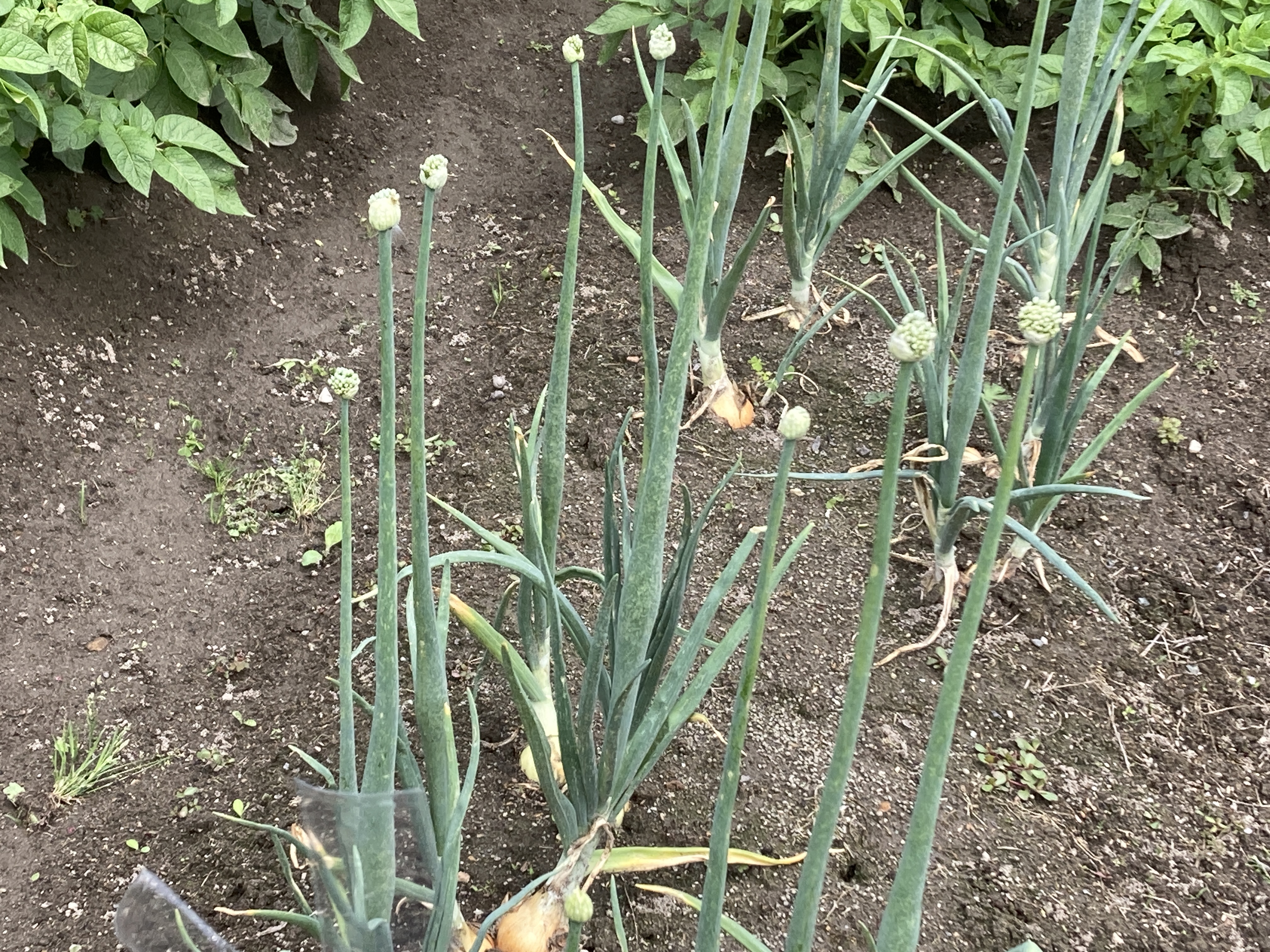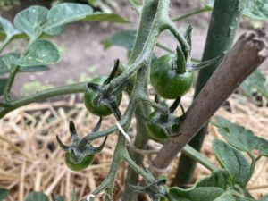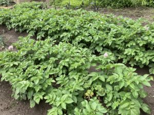 2024年6月5日blogyoko さてどっち 業者さんが午前中いっぱいかかりそうなので 畑へ観察に。 他の所では玉ねぎの収穫時期が近づいて いるようですが、茎が倒れていないので、 我が家の玉ねぎの収穫はもう少し先の ようです。 じゃがいもの花が咲き始めましたが、やはり まだ先になります。 ミニトマトの実がつきました。 赤か黄色ですが、さてどっちだったか?