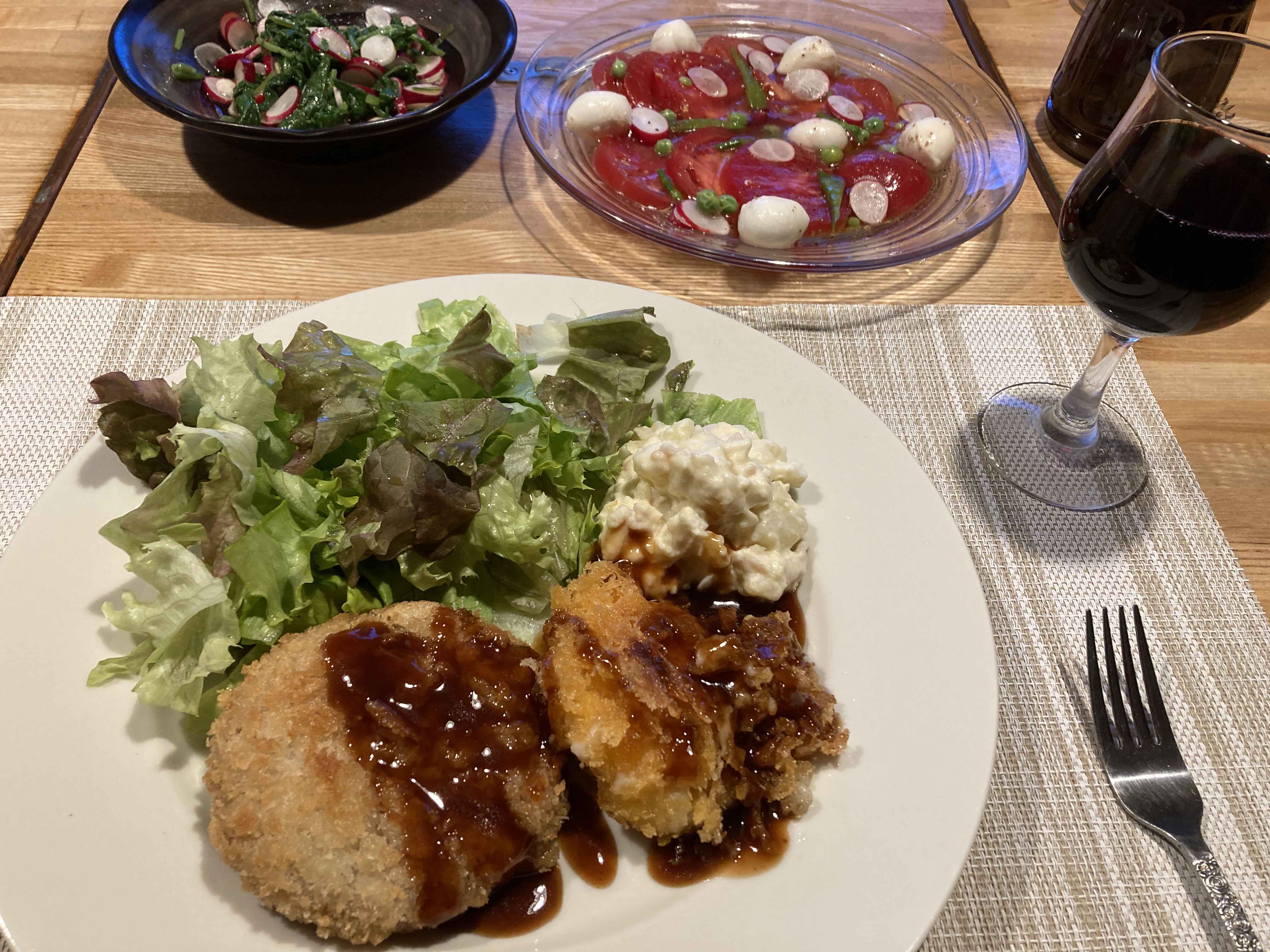 2024年6月5日blogyoko 二十日大根 二十日大根を収穫してきました。 ネットで見たら葉は味噌汁やナムルに 使うようです。 ナムルにしてみました。 スライスをしたのをカプレーゼにも。 夕食は大好きな揚げ物で〜す。