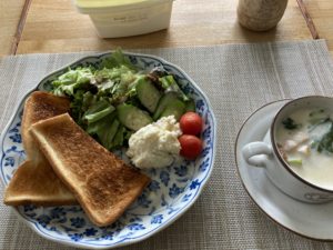 2024年6月5日blogyoko 今度こそ 相棒が12時過ぎに起きてきました。 体温が下がってきているので午後から 事務所へ行くそうです。 そこへ電話が。 1時半の打ち合わせが入りました。 お粥を作ると言ったら、カップ麺が 食べたいと。 私は残り物のスープとトースト。 相棒、朝もあまり食べていなかったのに カップ麺をしっかり食べました。 今度こそ風邪が治ったようで〜す。