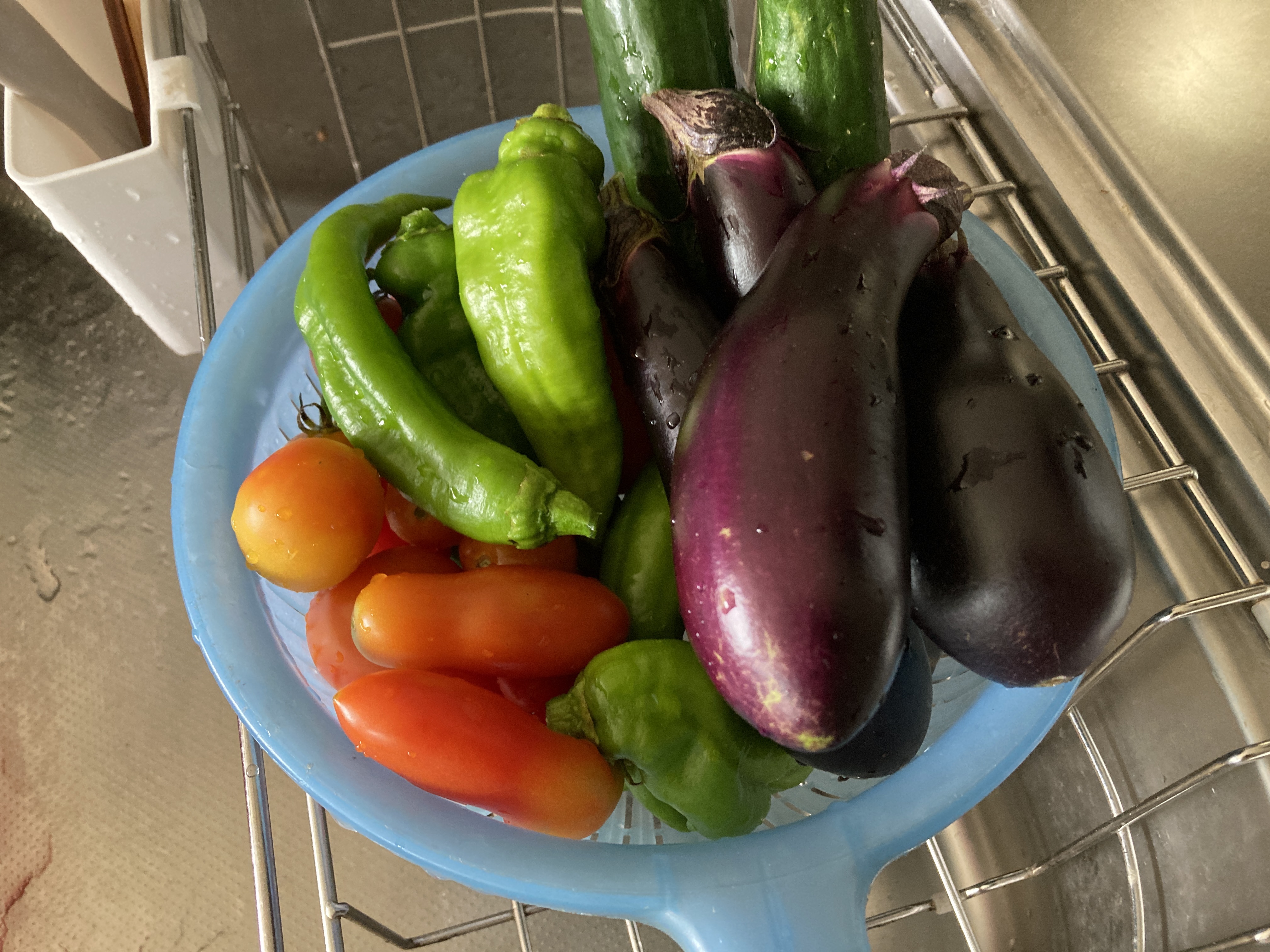 2024年8月22日blogyoko 思案中 仏壇の花の入れ替えに畑へ切り花です。 ついでに少しだけ野菜の収穫も。 きゅうりも終わってきたので倒す予定で いたのですが、昨日も2本収穫できたので さて、倒すかどうか思案中で〜す。
