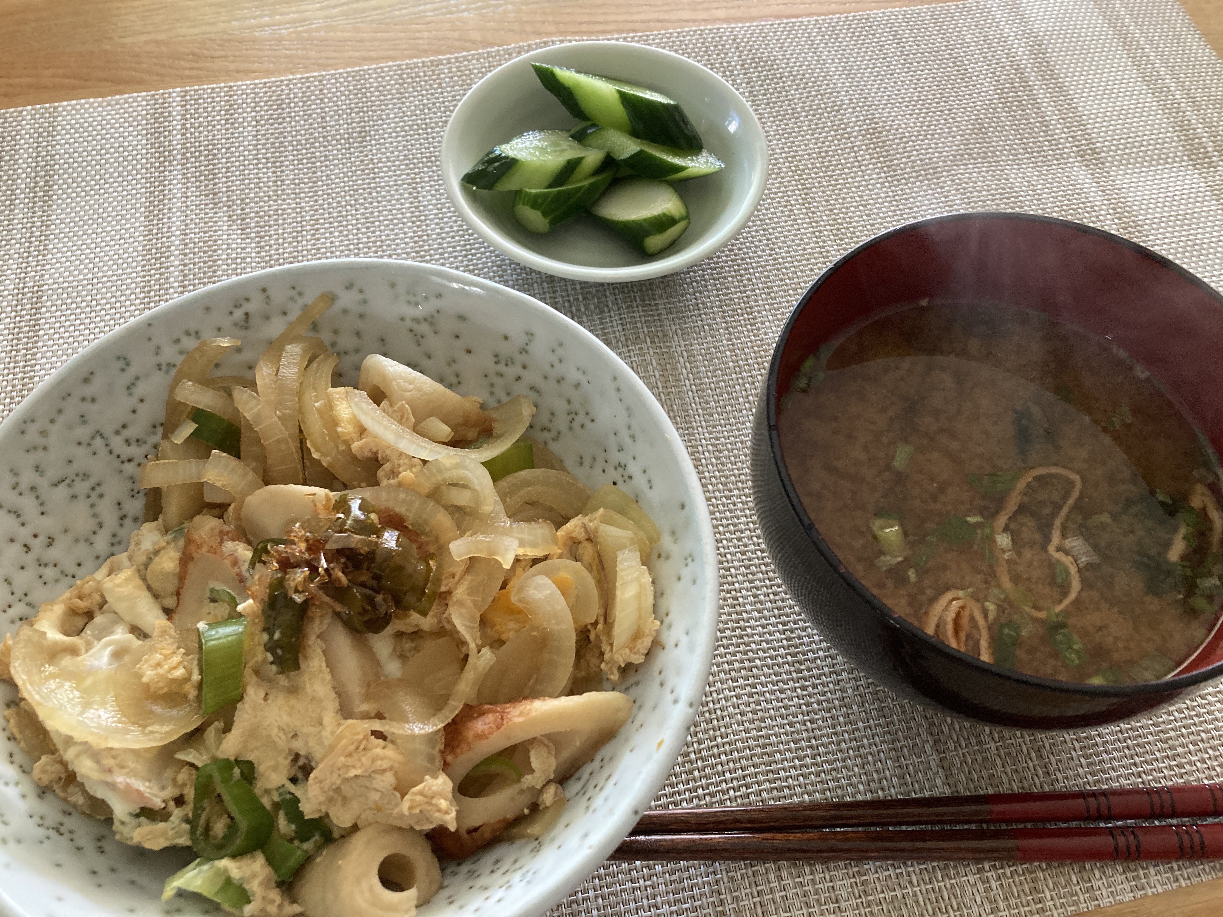 2024年9月18日blogyoko どこへ 午前中にサークルユーフィットへ行く気満々 だったのにお風呂掃除をしていて、また やっちゃいました。 もちろんジムにも行けません。 お昼はちくわ入り卵丼とインスタントの 味噌汁。 ご飯の量が少なかったので、丼物にすれば 満足感がと思い作ったけど、完全に食べ 過ぎ状態です。 運動もせずに安静&食べ過ぎ。 ダイエットはどこへ行ったやらで〜す。
