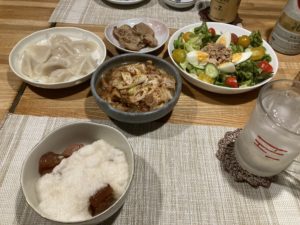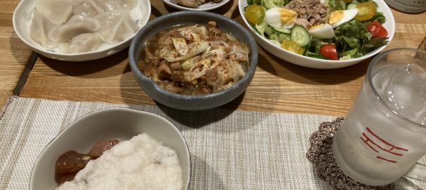 2024年9月18日blogyoko 相棒には 夕食はマグロの山かけと水餃子。 あとは角煮の半端と絹揚げの煮込み。 夏からずっと冷蔵庫の温度が低いままだった せいか、冷凍庫に入れた訳でないのに 絹揚げがしみ豆腐状態になっていました。 ですが、その煮込みが相棒には意外と 美味しかったようで〜す。