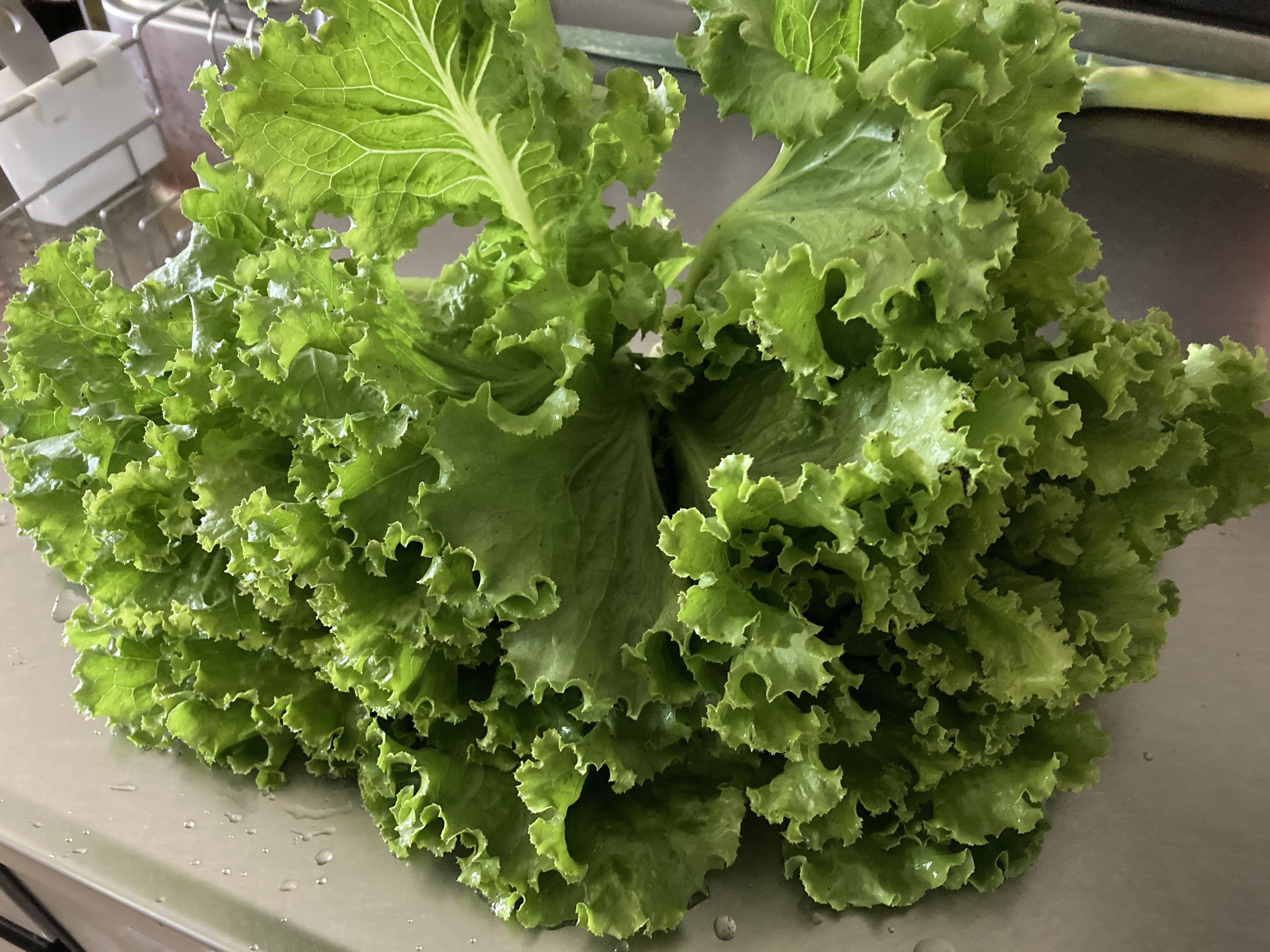 2024年9月25日blogyoko 今夜は 相棒は普通通り事務所へ。 私はいつお客様が来るか分からないので どこにも行かず待機です。 庭を掃いていたら隣の農家さんが声を かけてくれました。 プリーツレタスのお裾分けです。 大きくなりすぎたので、しゃぶしゃぶで 食べるように言われたので、今夜は早速 レタスしゃぶしゃぶで〜す。