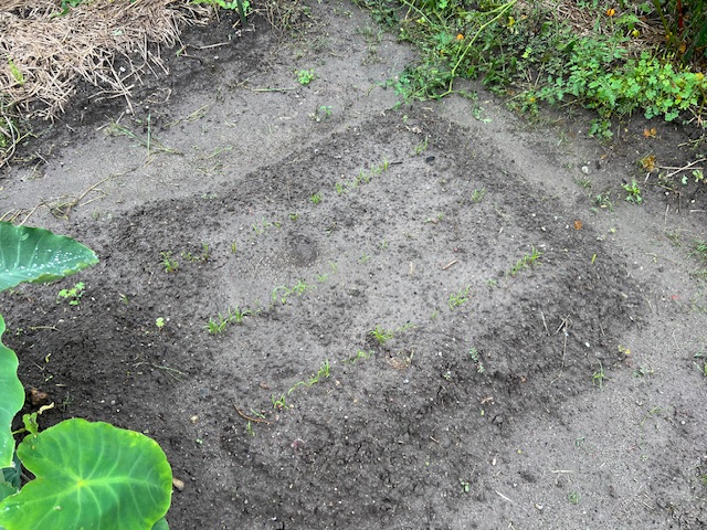 2024年9月25日blogyoko 早く太陽が 雨が小降りになったので畑観察。 1週間前に撒いた種から大根の葉が出て きました。 ほうれん草も少しだけ。 雑草だらけの畑になっているので、腰痛も 治って雑草取りをしたいのに雨でできず。 早く太陽が見たいで〜す。