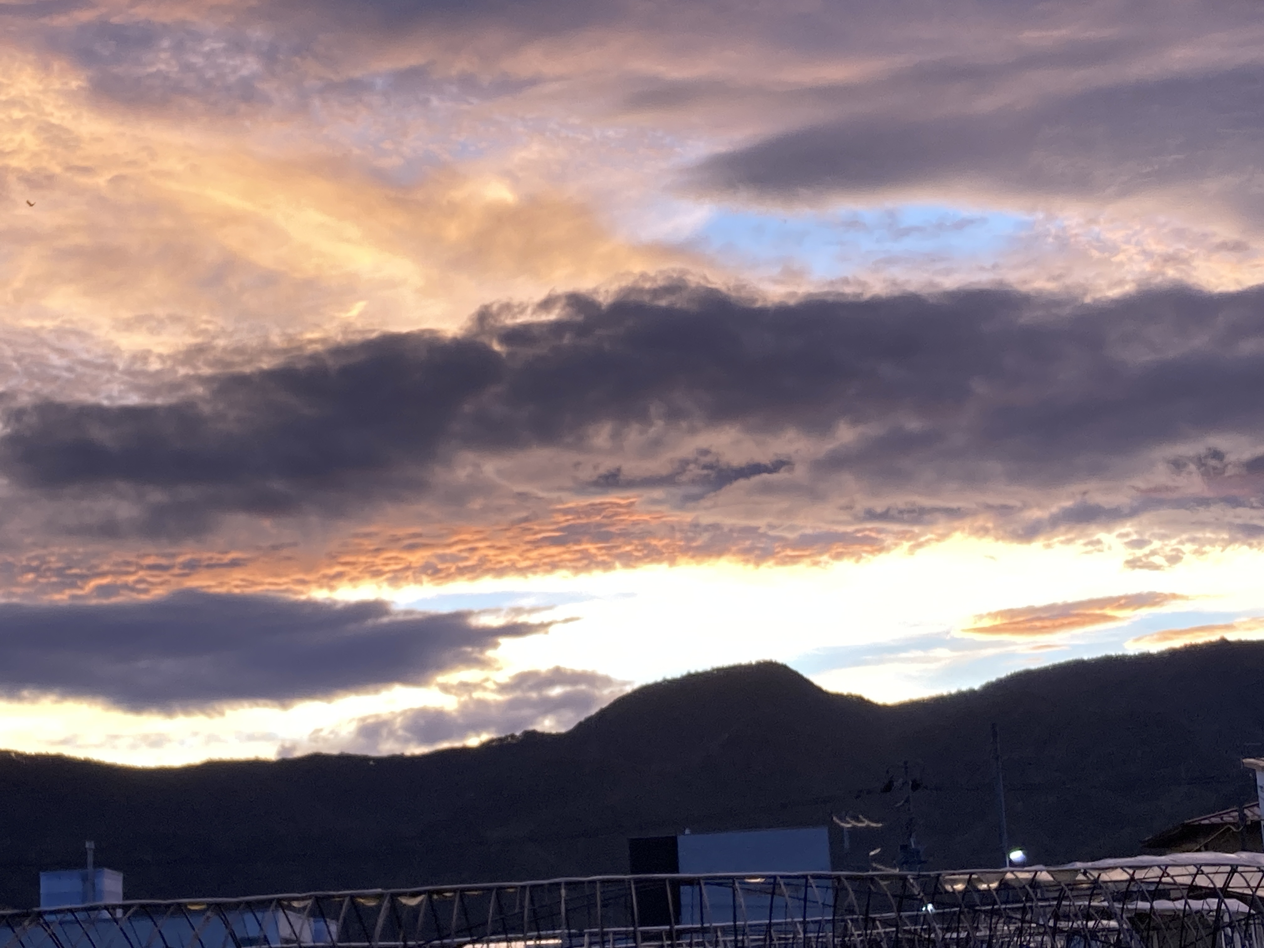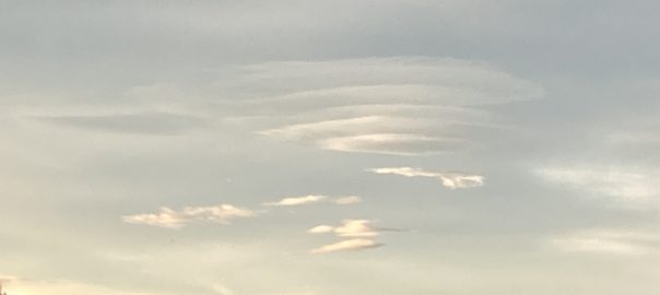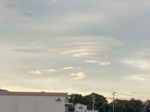 2024年10月20日blogyoko おはようございます おはようございます。 遠くの雲が円状に何層も重なって見えています。 そして反対側にはまだ月が残っています。 土手のコキアも赤くなっていま〜す。