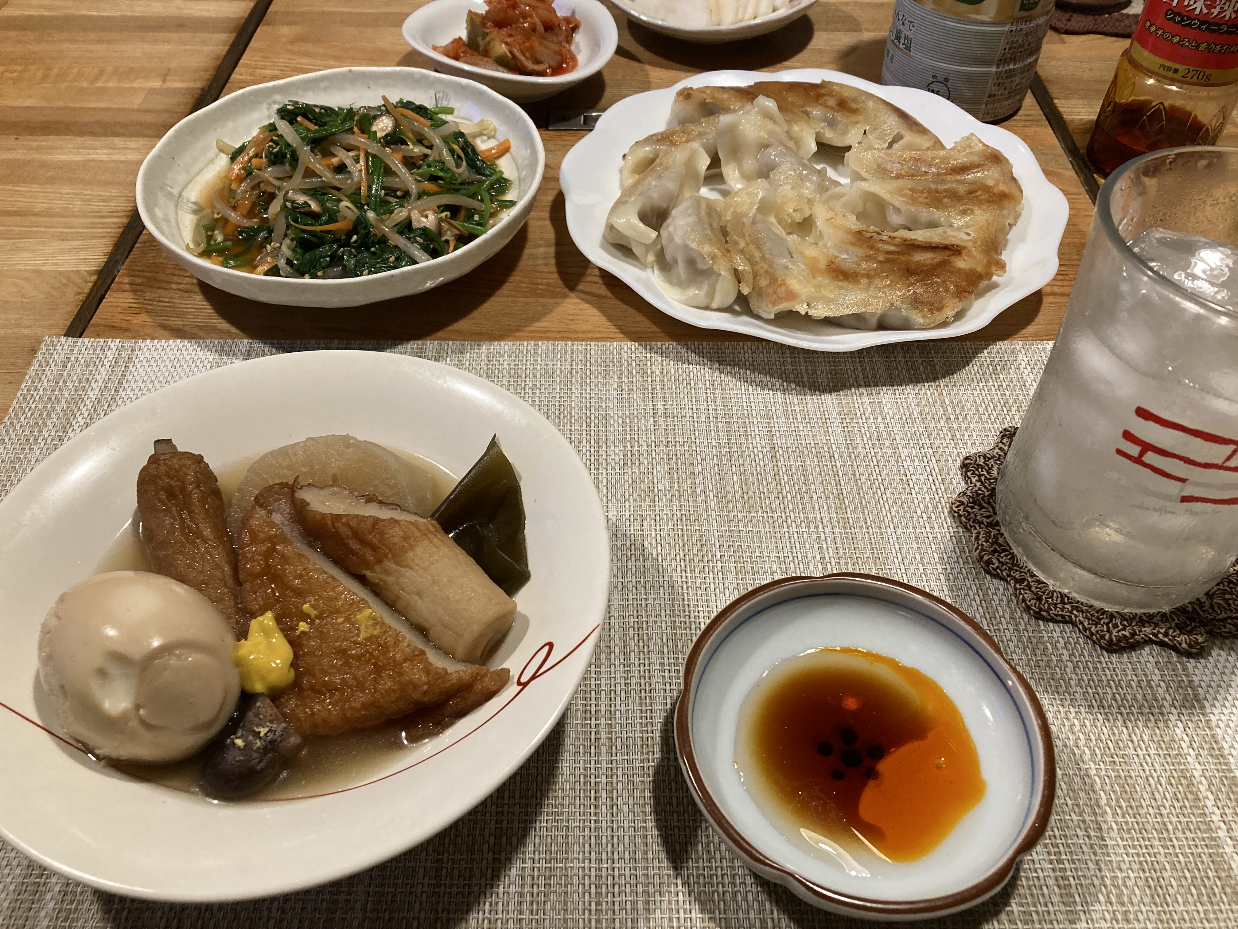 2024年10月20日blogyoko ナムルは 夕食は朝から煮込んでいたおでん。 投票に行った後はだらだら本読みばかりして いたので時間がなくなりました。 好きな餃子を焼いて、後はサッとできる ほうれん草のナムルです。 しゃぶしゃぶでは食べるほうれん草ですが 相棒、ナムルは口に運びませ〜ん。