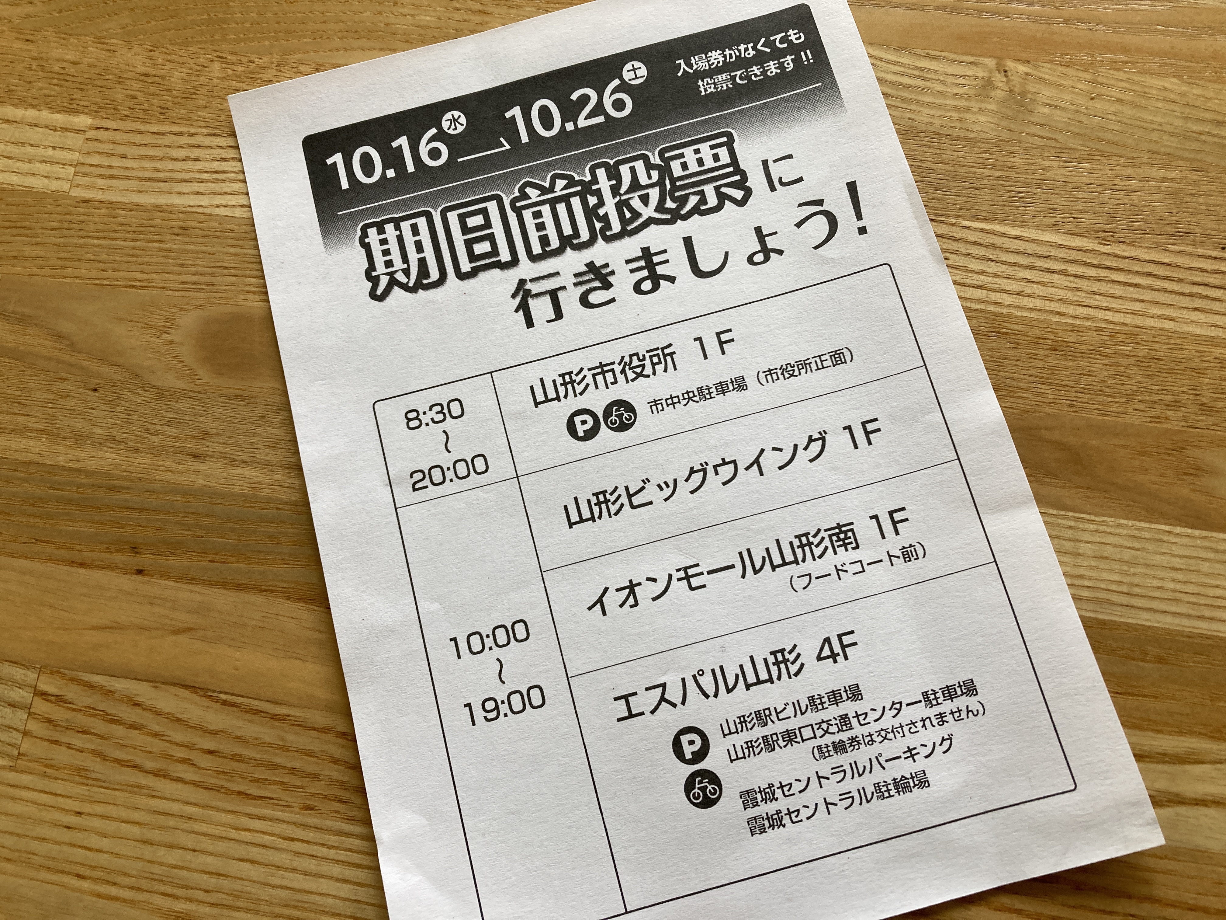 2024年10月20日blogyoko 期日前投票 午後から期日前投票にビックウイングへ。 他にもイベントがあって、駐車場がいっぱい。 結構期日前に投票に来る方が多い事に びっくり! 私たちは初めてで〜す。