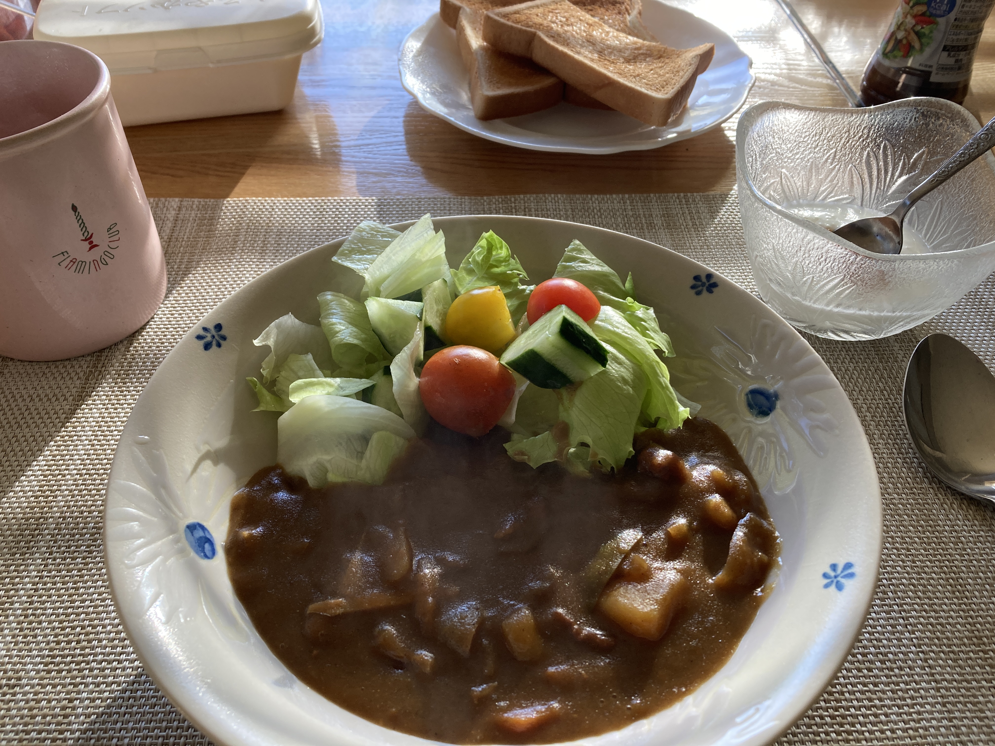 2024年10月21日blogyoko ラインで 今日は10時からサークルユーフィットの芋煮会 があるので早め朝食です。 カレーとトースト。 食べたら、掃除して10時前の間に4件の用事を 済ませる予定です。 でも、間違いなく遅れるのでスタッフにラインで 連絡で〜す。