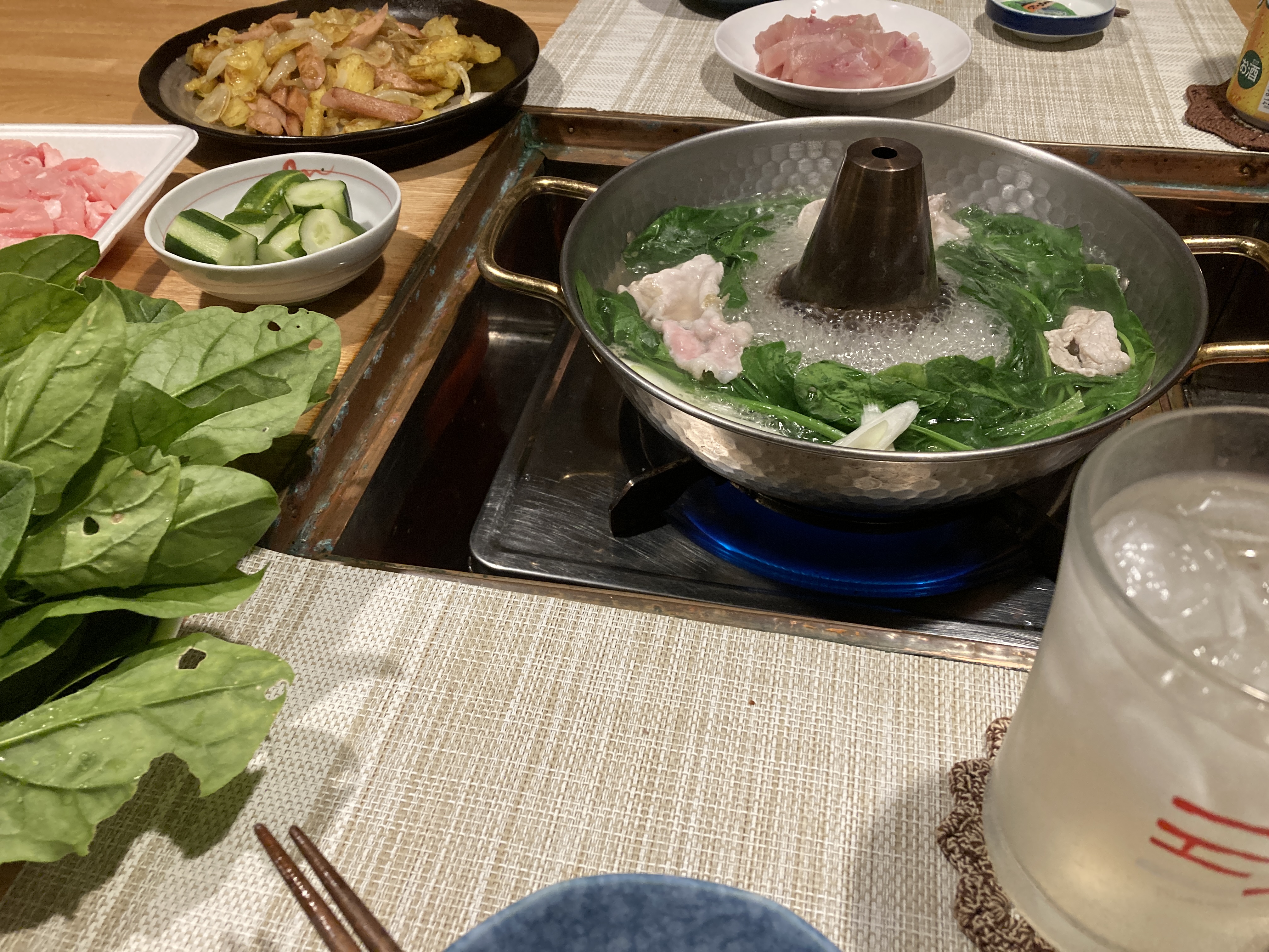 夕食は午前中に収穫したほうれん草で