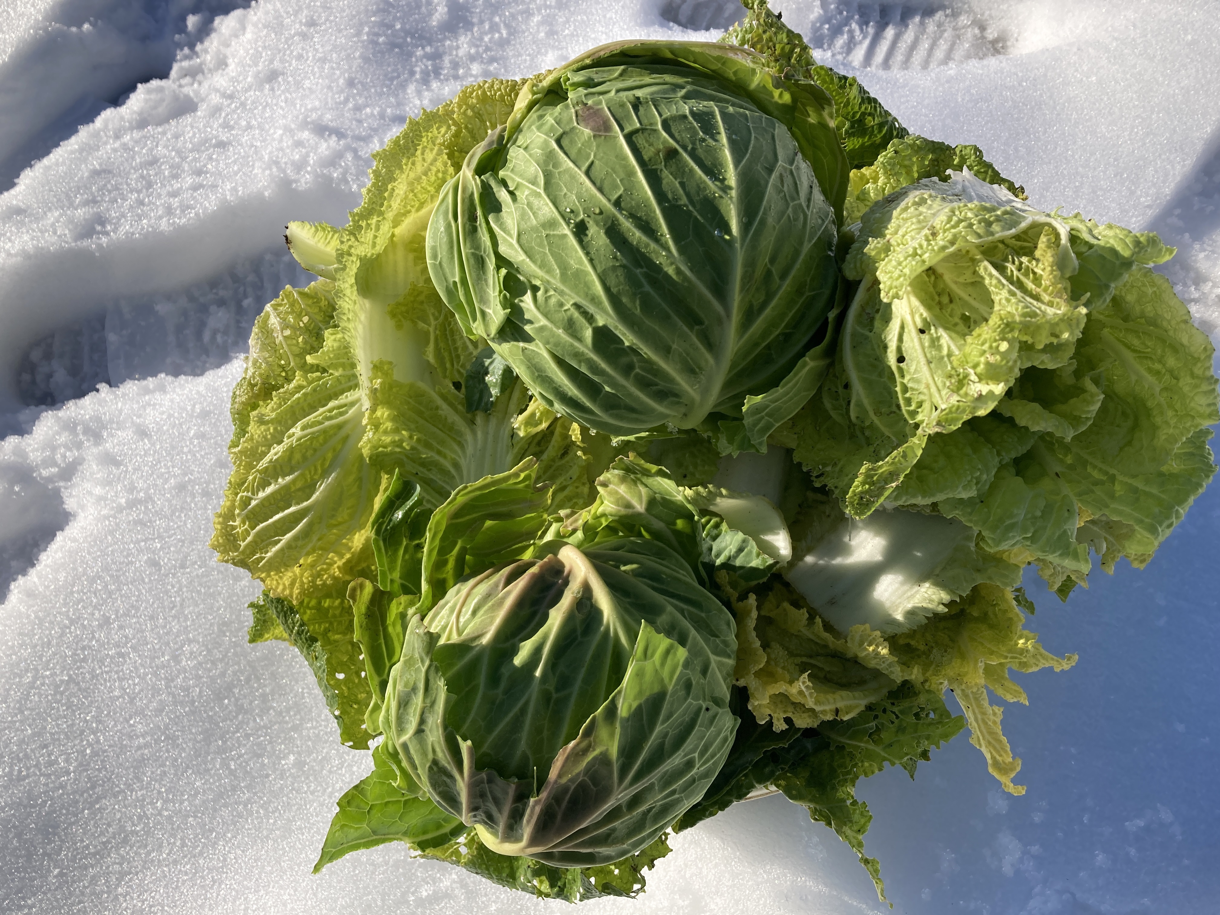 2025年1月20日blogyoko 雪の中から キャベツのあまりの高さに購入を諦め 気温が上がってきたので畑へ。 雪の中から掘り出した白菜とキャベツ。 小さいからそのままに放置していたけど これはこれで充分食べられそうで〜す。
