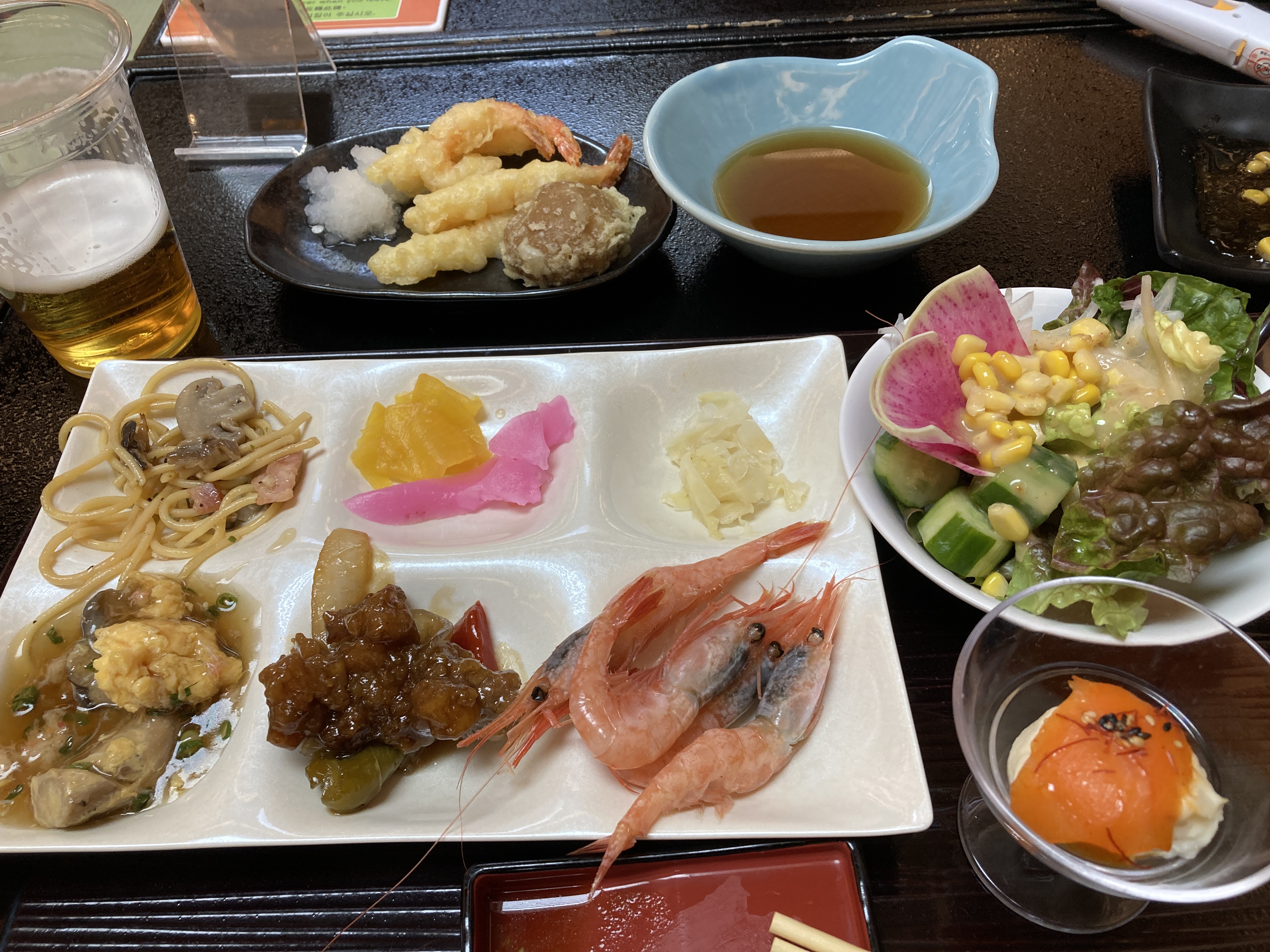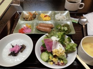 2025年1月19日blogyoko 朝食は 朝食はお粥とサラダを中心に。 ここのホテルは海鮮ののっけ丼が売りなので 相棒はしっかりマグロたっぷりののっけ丼と 鯛茶漬け。 お腹も満たされ、今度はお昼ご飯を目指して 出発で〜す。