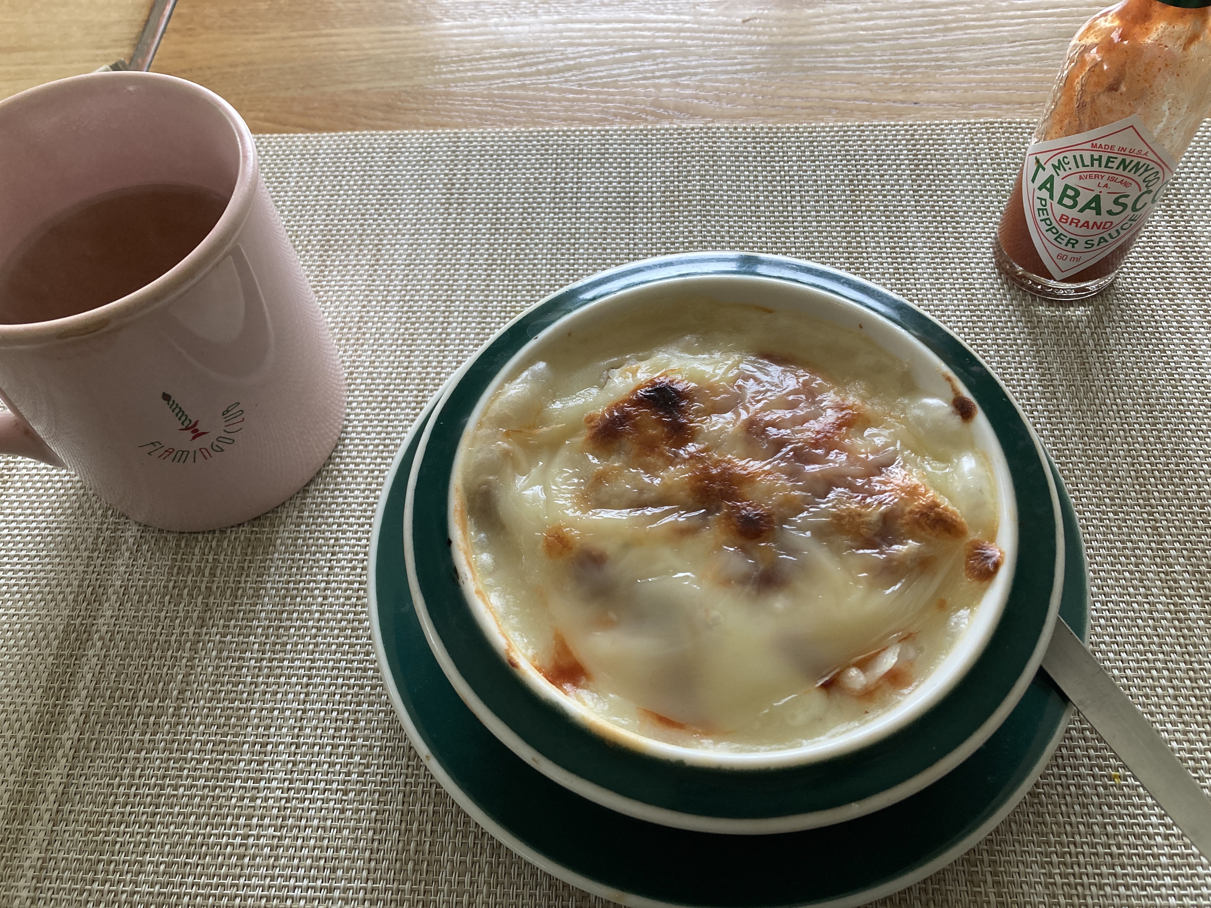 2025年1月30日blogyoko 春になったら お昼はドリアとコンソメスープ。 読書ばかりして全然動かないからお腹も そんなに空かないはずなのに、時間が くると、ちゃんと食べています。 今は厚着なのでごまかせるけど、春に なったら、しっかりダイエットです。 と、思ってはいるのですが、、、。