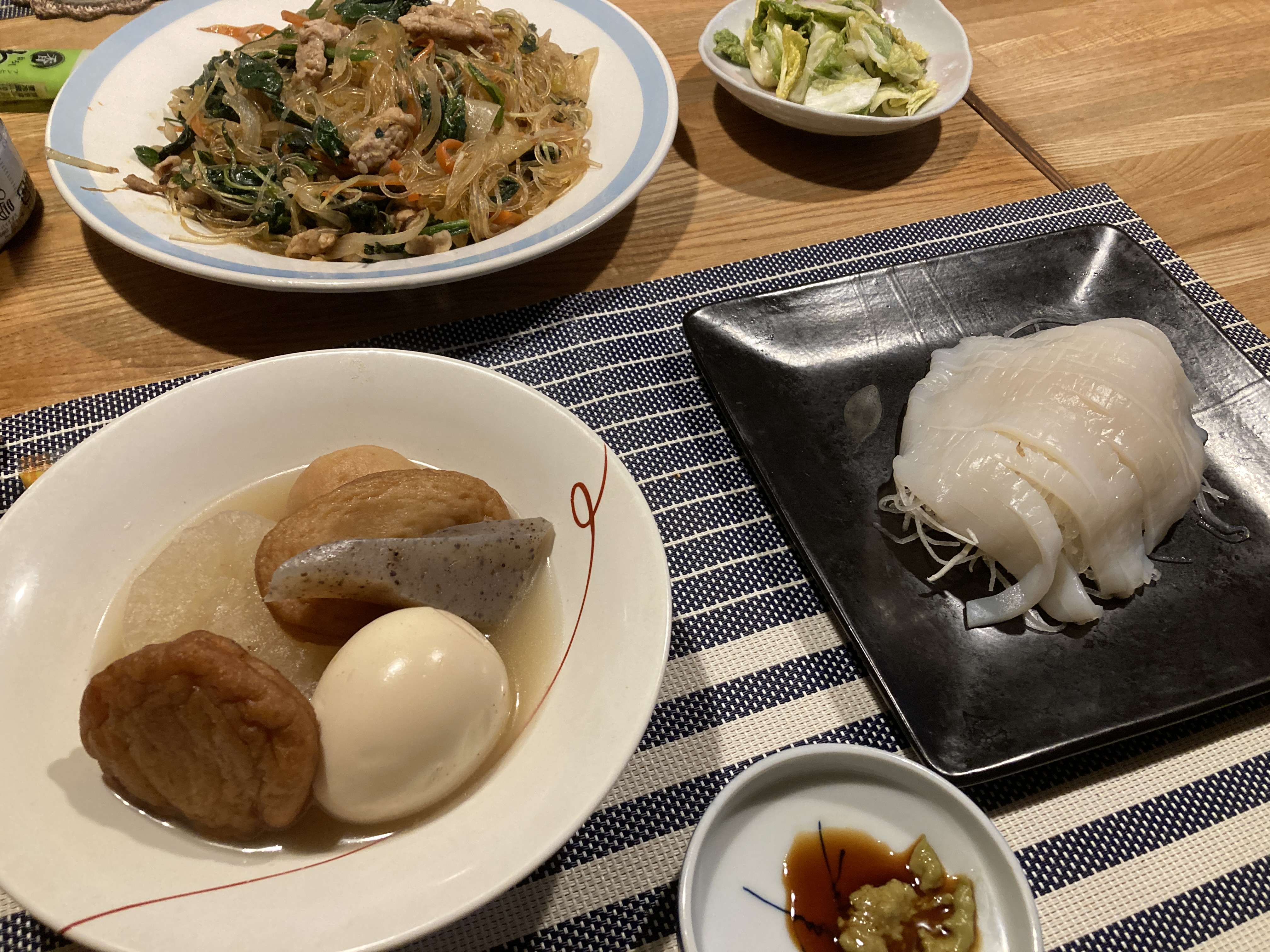2025年2月22日blogyoko ギブアップ 相棒からイカ刺しが食べたいリクエストで 購入していました。 おでんは前日からグツグツ。 チャプチェは私が食べたくて準備。 お昼を食べてからお腹の具合が悪い相棒。 控えてとラインが来た時点ですでに遅し。 イカ刺しだけ食べてギブアップで〜す。