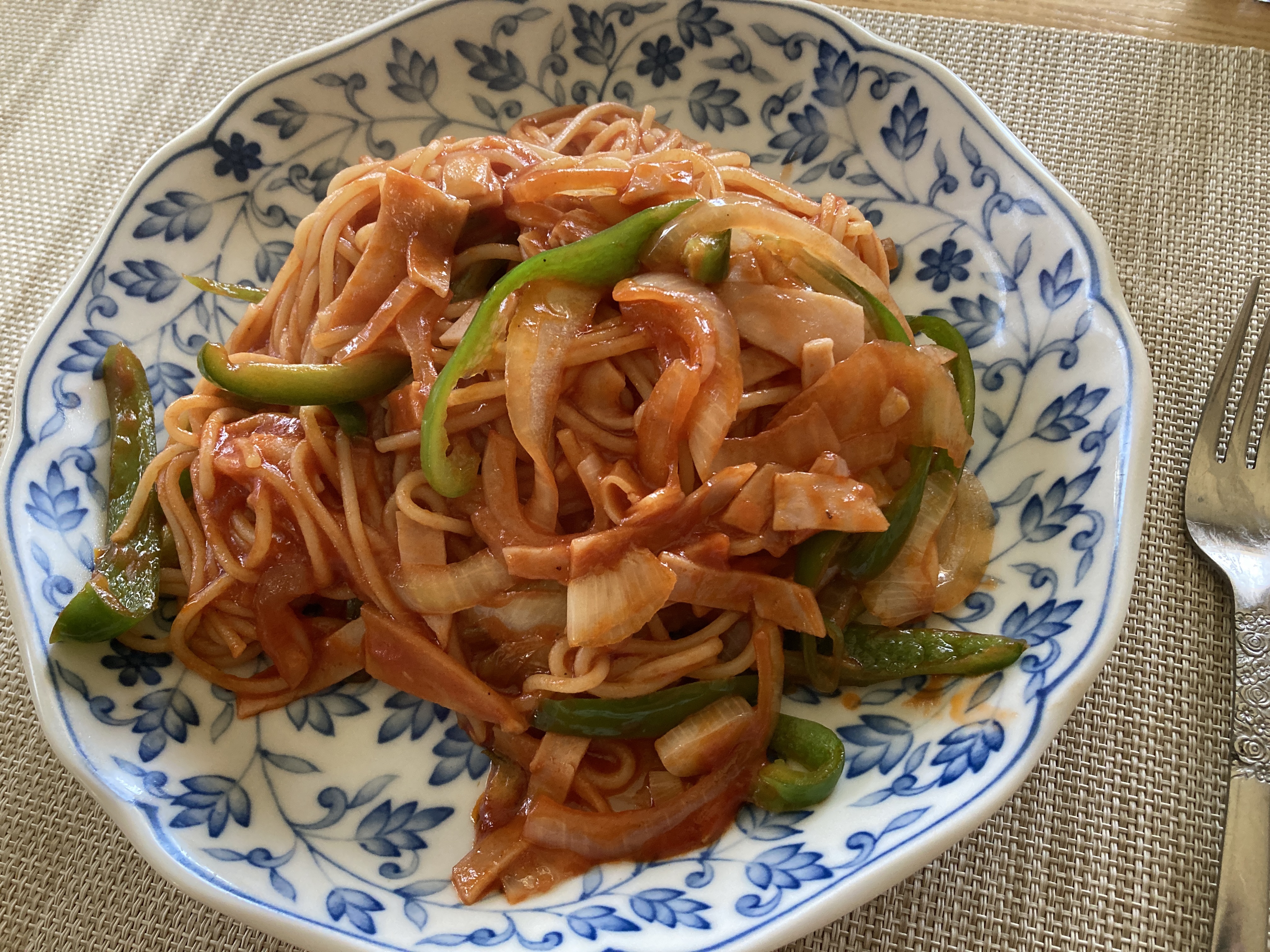2025年3月24日blogyoko リクエストで お昼は相棒からのリクエストでナポリタン。 それも柔らかめでの注文です。 細めのパスタをチーンしてやわやわに。 椅子から立ち上がるまで痛いけど、後は どうにか調理できます。 私は硬い方が好きなので、少し太めの量を 減らしてのお昼で〜す。