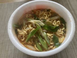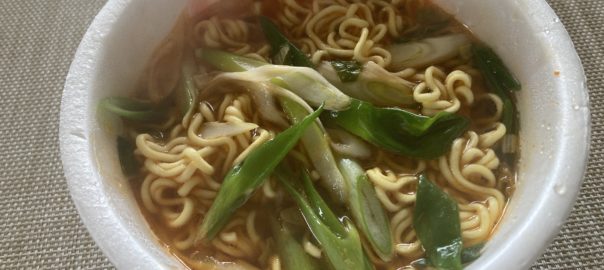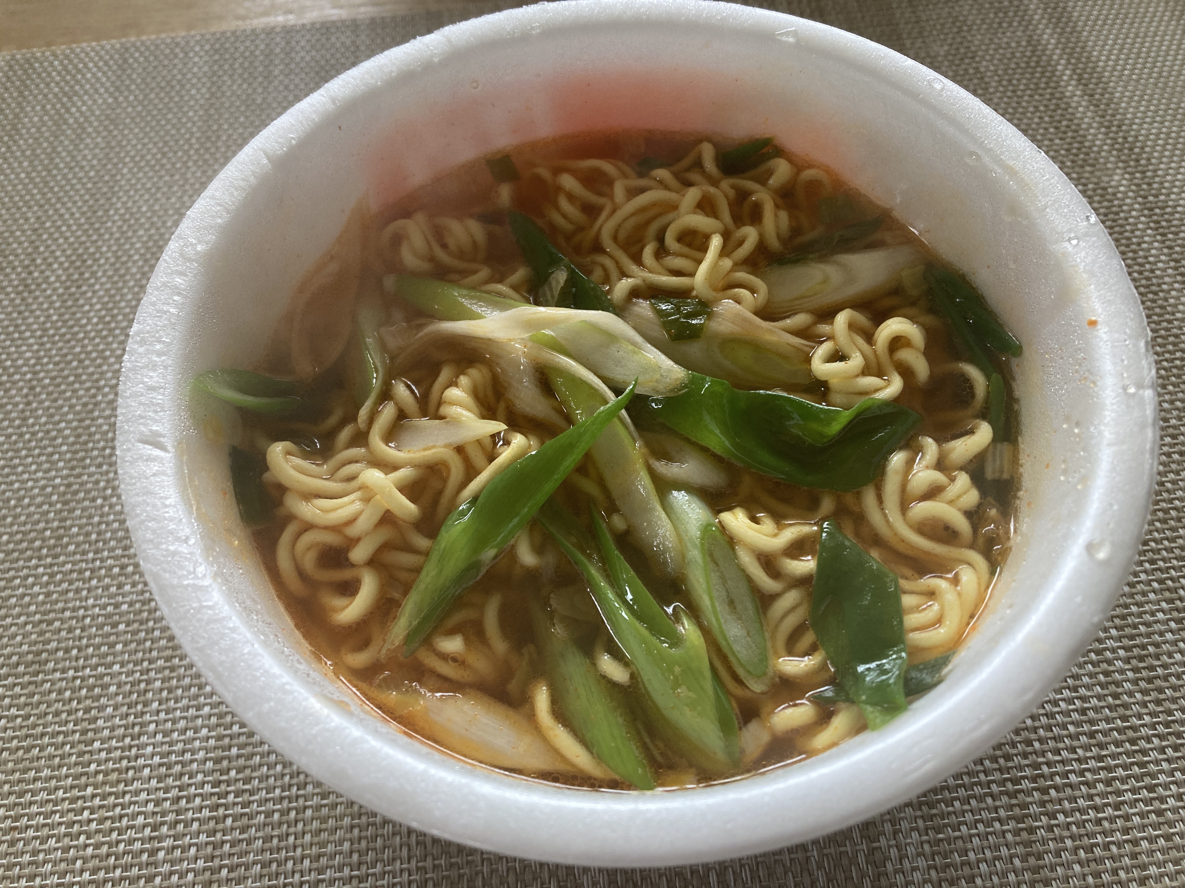 久々のカップ麺。 お湯を注ぐ前に大好きな青ネギを トッピング。 筋肉痛で、一日中サボりまくりで〜す。