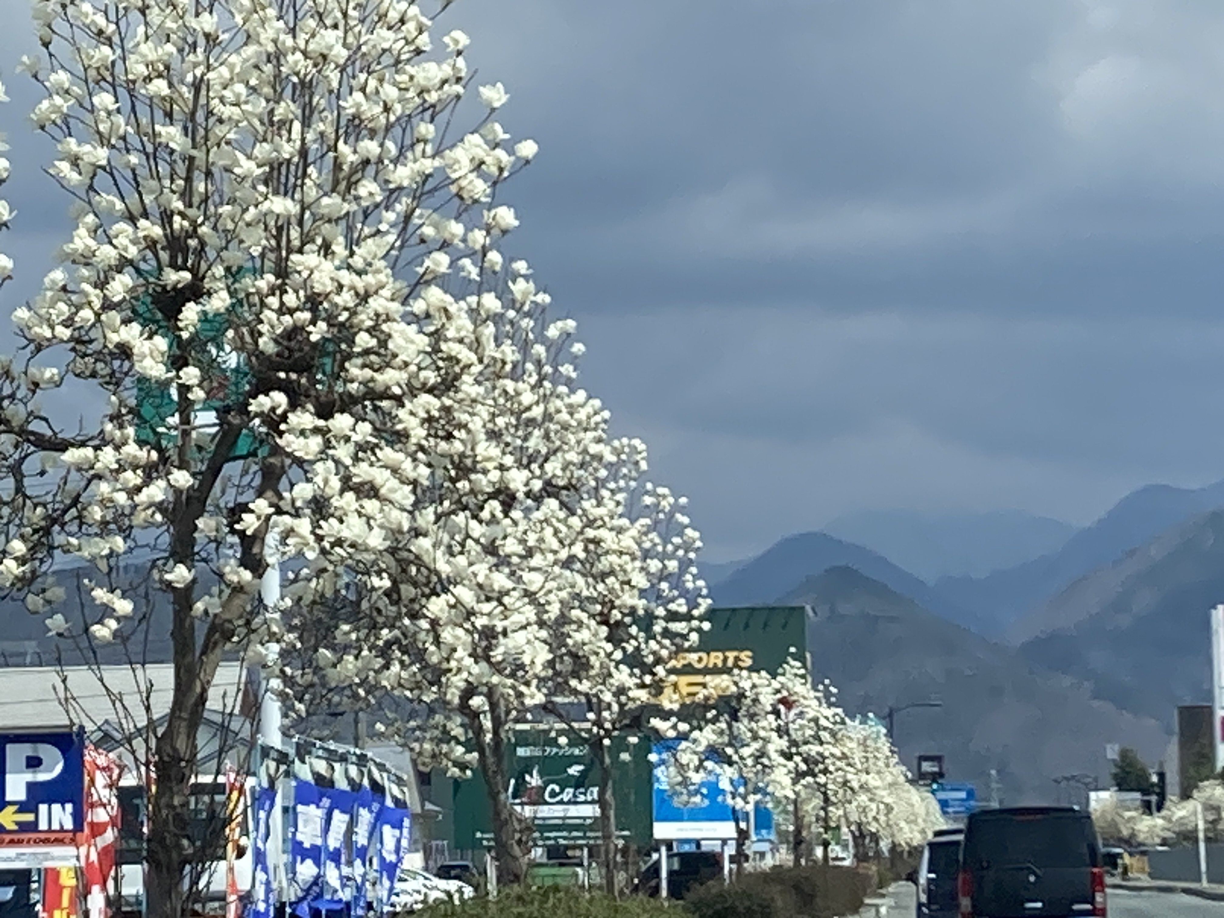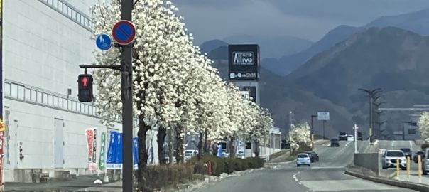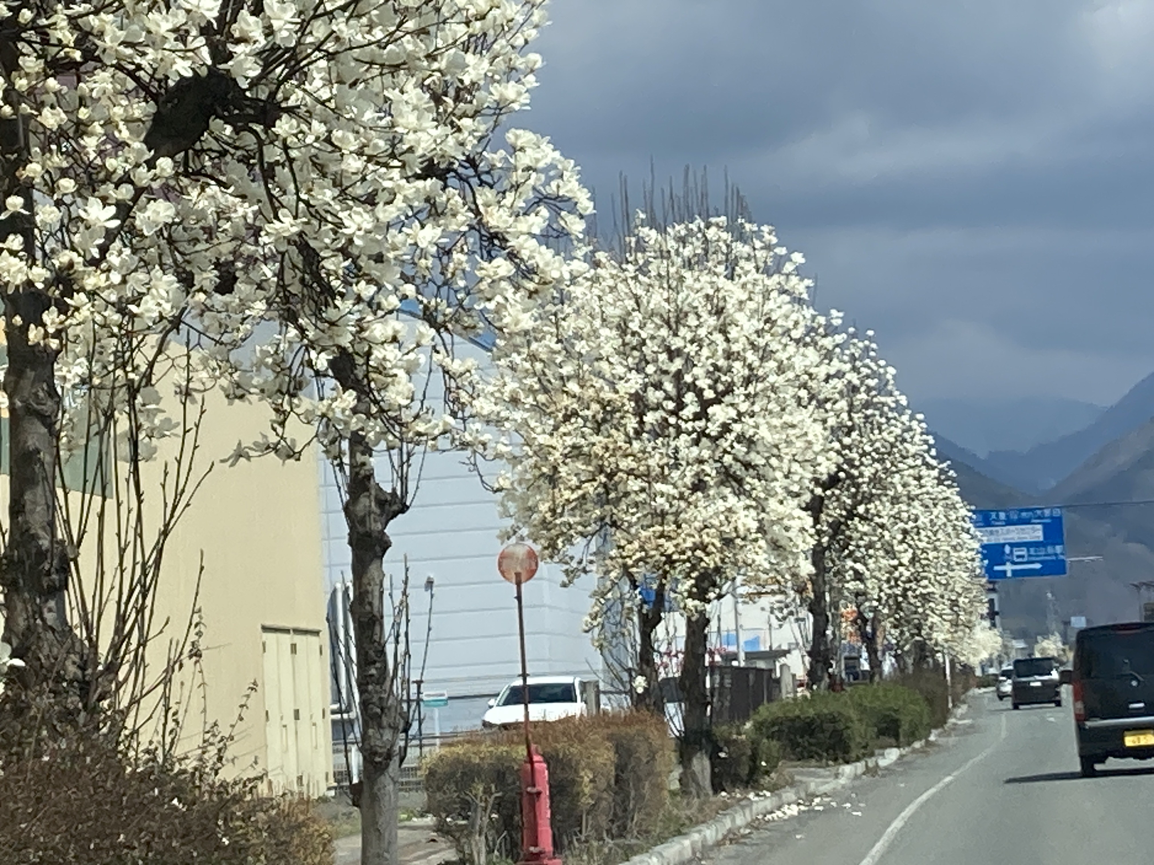 路肩の木蓮が満開状態で綺麗です。