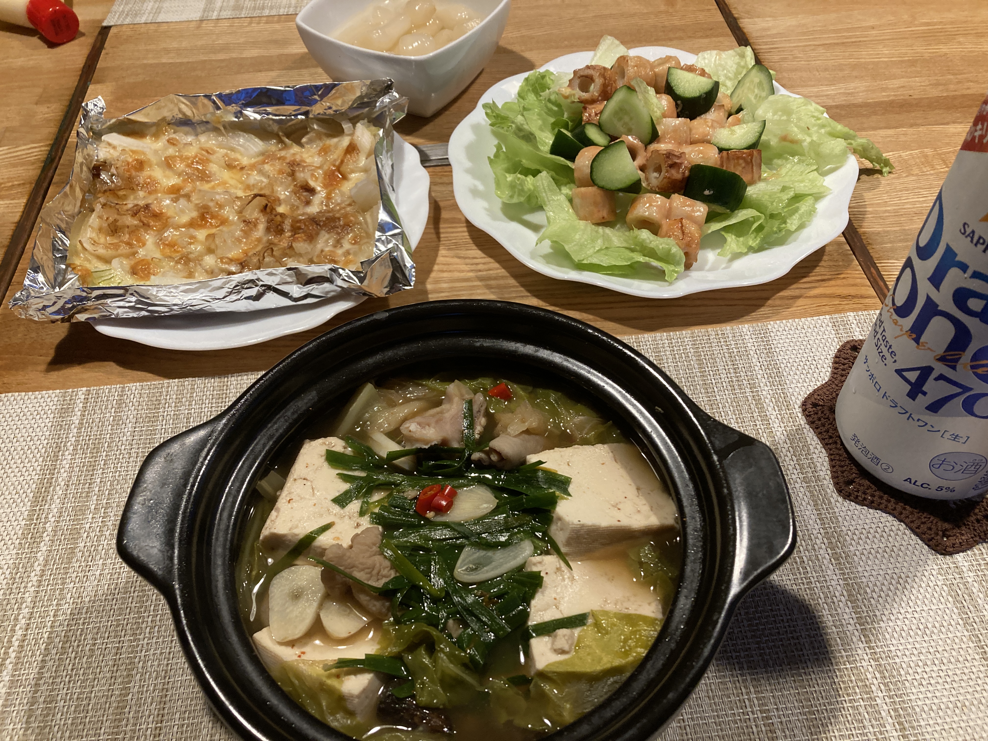 2025年4月24日blogyoko 正解 小雨が降っているので畑作業はできず、二人で 見逃しのドラマを何本も見ています。 夕食の下準備はしてあるのでドラマが終わったら 数分でテーブルへ。 相棒用にもつ鍋、そして新玉のチーズ焼き& ちくわのエビマヨ風。 やっと冷凍庫のもつが終了です。 これからは、まず鍋はしないでしょうから、 昨夜は寒くて、もつ鍋正解で〜す。