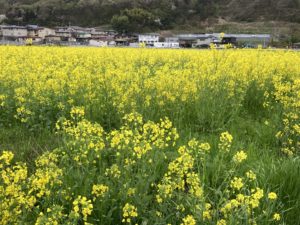 2025年4月24日blogyoko 1時間コース 今日の朝散歩は高原方面へ。 前はそば畑だった所が菜の花でいっぱいです。 農道をテクテクです。 文字は見にくくなっていますが、工事用車両が きれいに描かれています。 こちらも工事用車両の看板。 バイパス近くまで戻った所のお宅のハナミズキ。 1本の木から紅白??? よくよく見たら2本の木の枝が絡まった感じで 伸びていました。 今日も1時間コースの朝散歩で〜す。