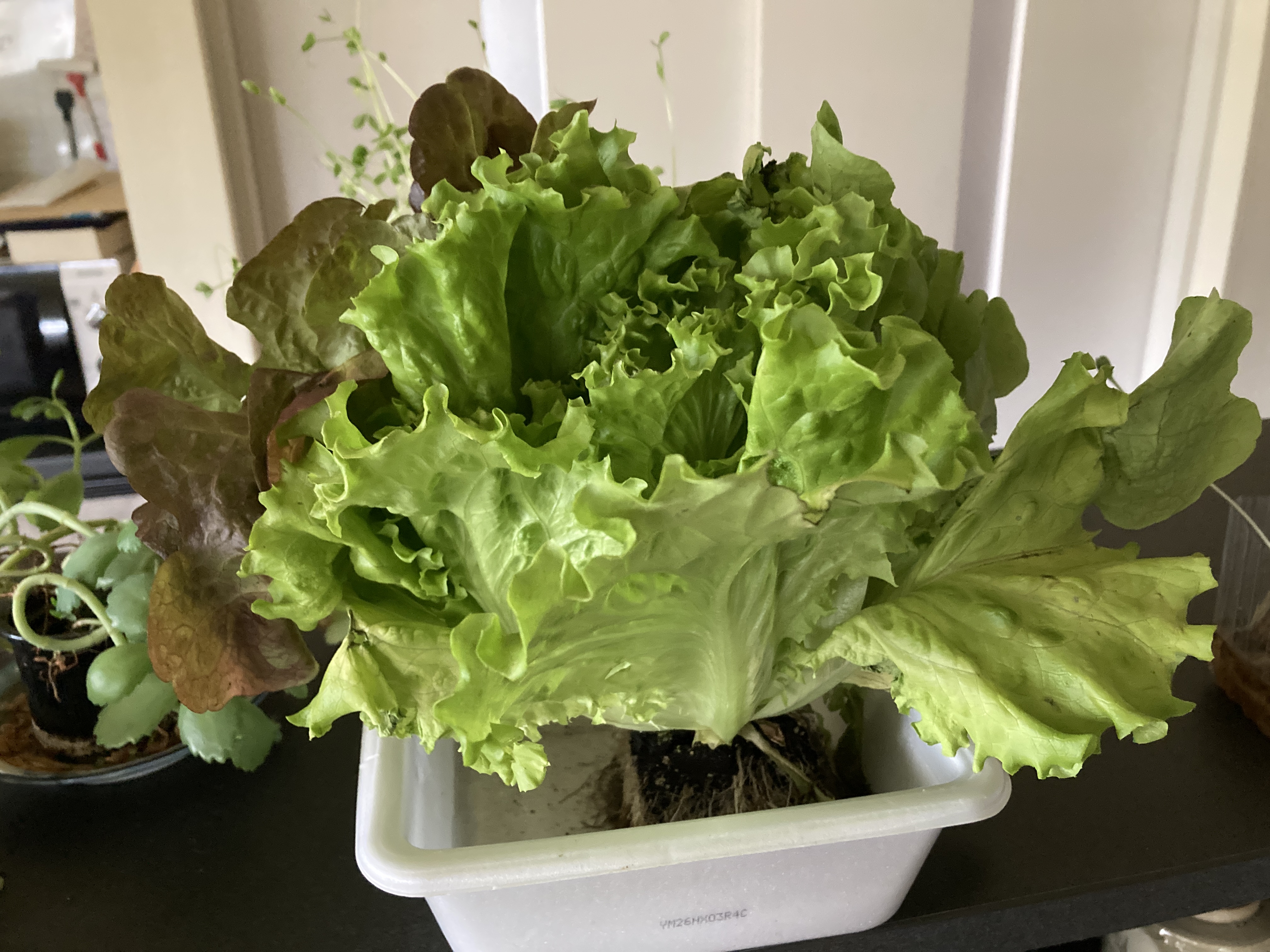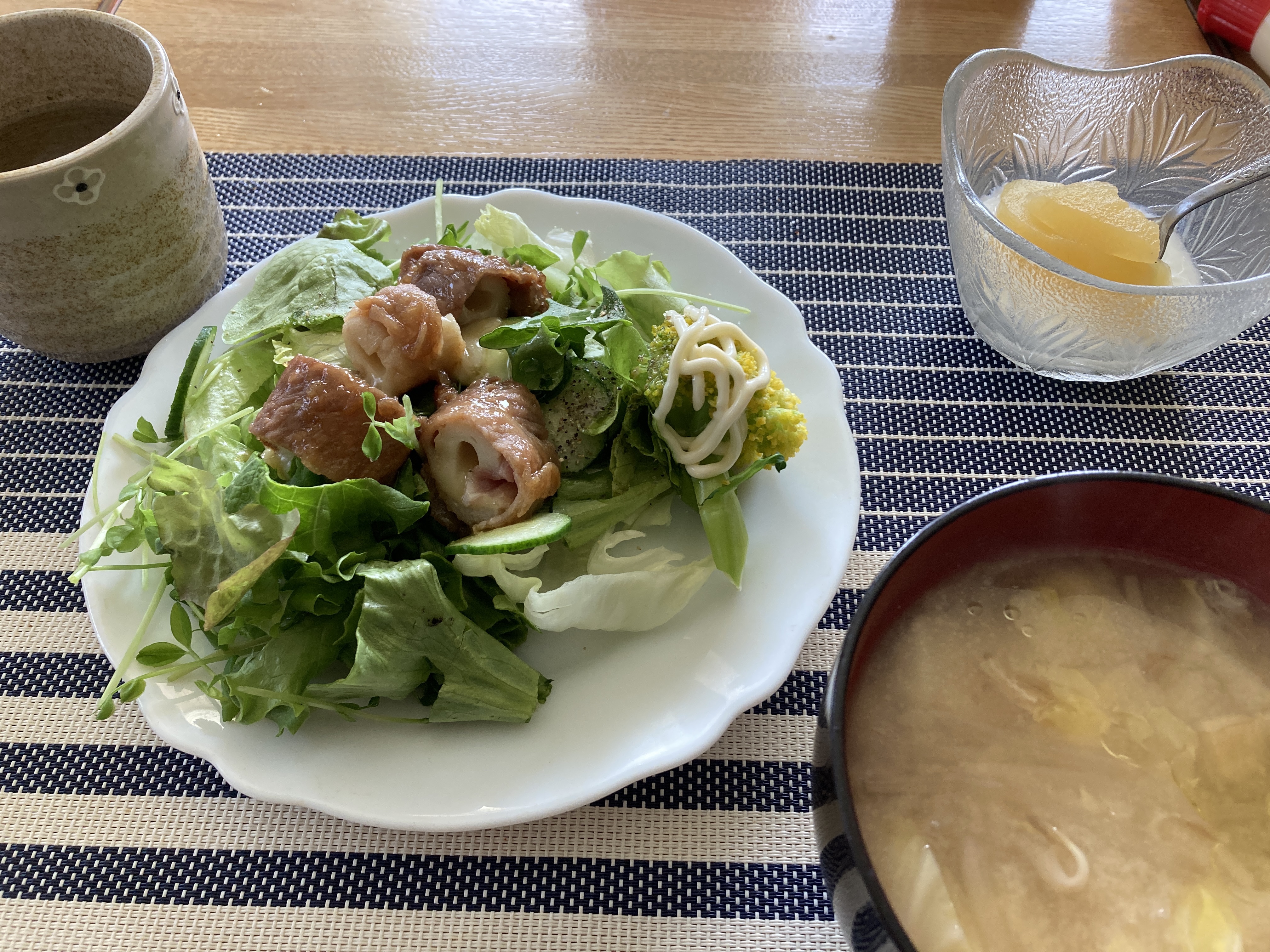 2025年4月15日blogyoko レタス 焼きそばのカップで育てているレタス。 順調に大きくなっています。 朝食はそのレタスをちぎって、あとは 前夜の肉巻きをのせて出来上がり。 立哨から戻った相棒、大急ぎで食べて 出かけて行きま〜す。