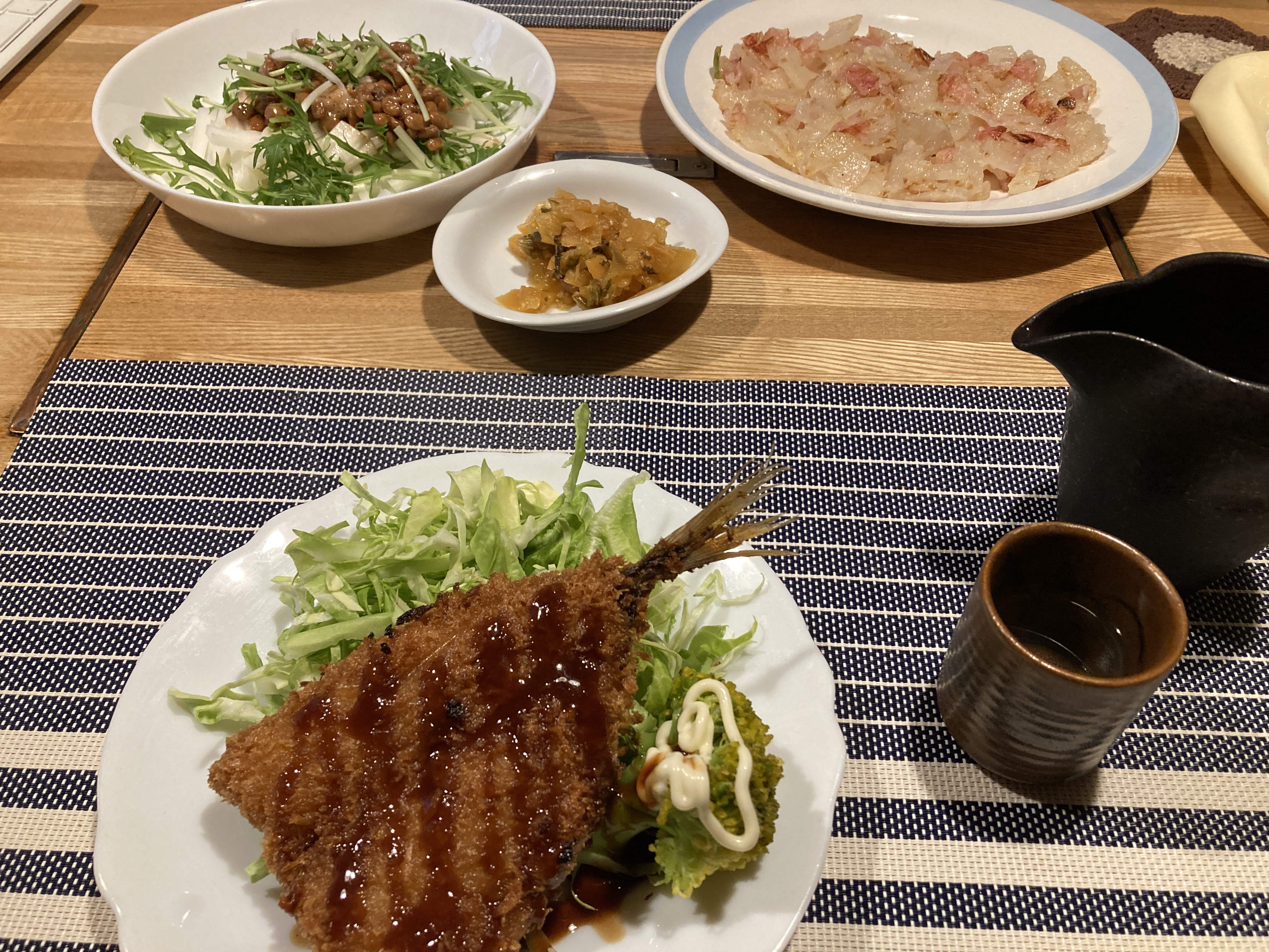 2025年4月16日blogyoko 好評 4時過ぎに帰宅する相棒。 夕食まで読書や見終わってないドラマを二人で 鑑賞して時間を費やしています。 もう少し、暖かくなると畑作業なんでしょうが まだまだ天候も悪いし寒いしで難しいです。 夕食はまたまたアジフライと大根餅& 納豆サラダ。 水気がなくなってきた大根があるので、大根 餅に、ご飯を食べてないので納豆も残って いるので山芋や水菜と一緒にサラダを作って みました。 2つ共の中々の好評で〜す。
