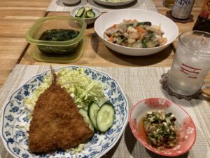 2025年4月29日blogyoko 我慢 夕食は相棒が好きなアジフライと八宝菜。 私もこのアジフライならOKです。 あとは最近ご飯を食べていないので納豆も 食べていない事に気づき、納豆にダシをかけて。 納豆とダシ、あ〜、やはりご飯食べたいなあ。 でも、相棒がコメ抜きを頑張っているから、 横で食べるわけには、、、。 我慢で〜す。