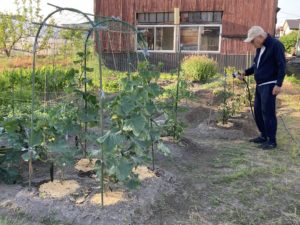 私は野菜の収穫で相棒は畑のお隣さんから