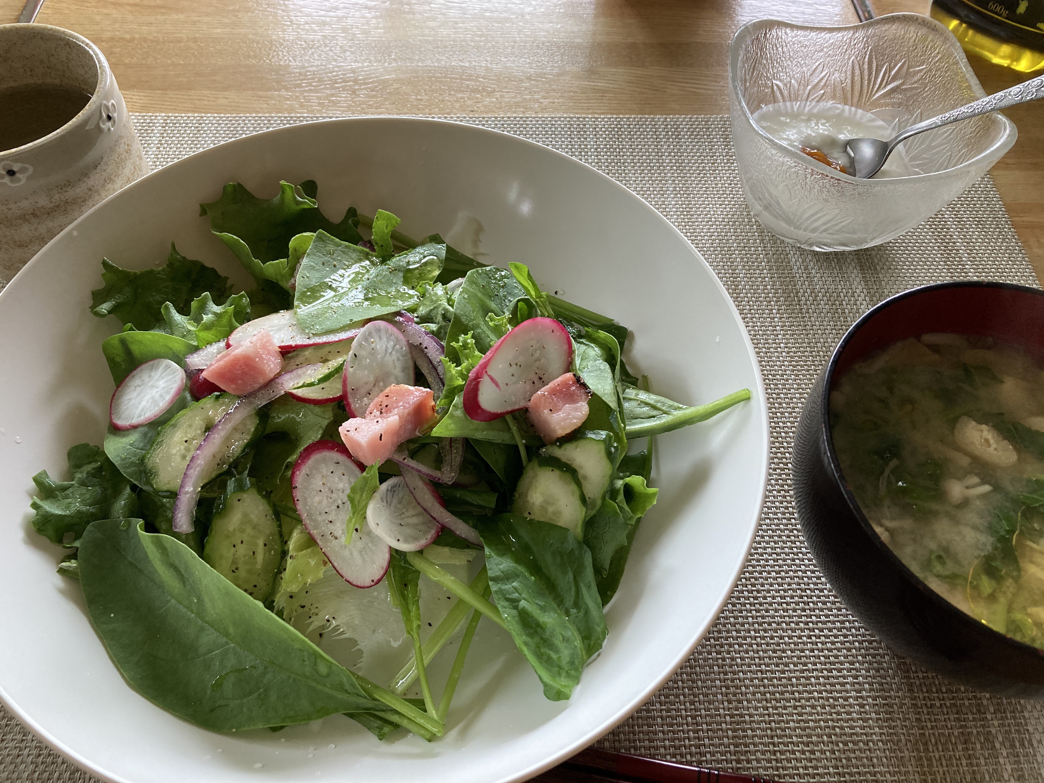 2025年6月14日blogyoko 新鮮が一番 今日も同じ生野菜の朝食。 我が家の菜園で作っている野菜達ですが サラダほうれん草だけは購入した物です。 毎日、野菜ばかりですが、慣れてしまうと 違和感なくなっている相棒です。 採りたてなので新鮮が一番で〜す。