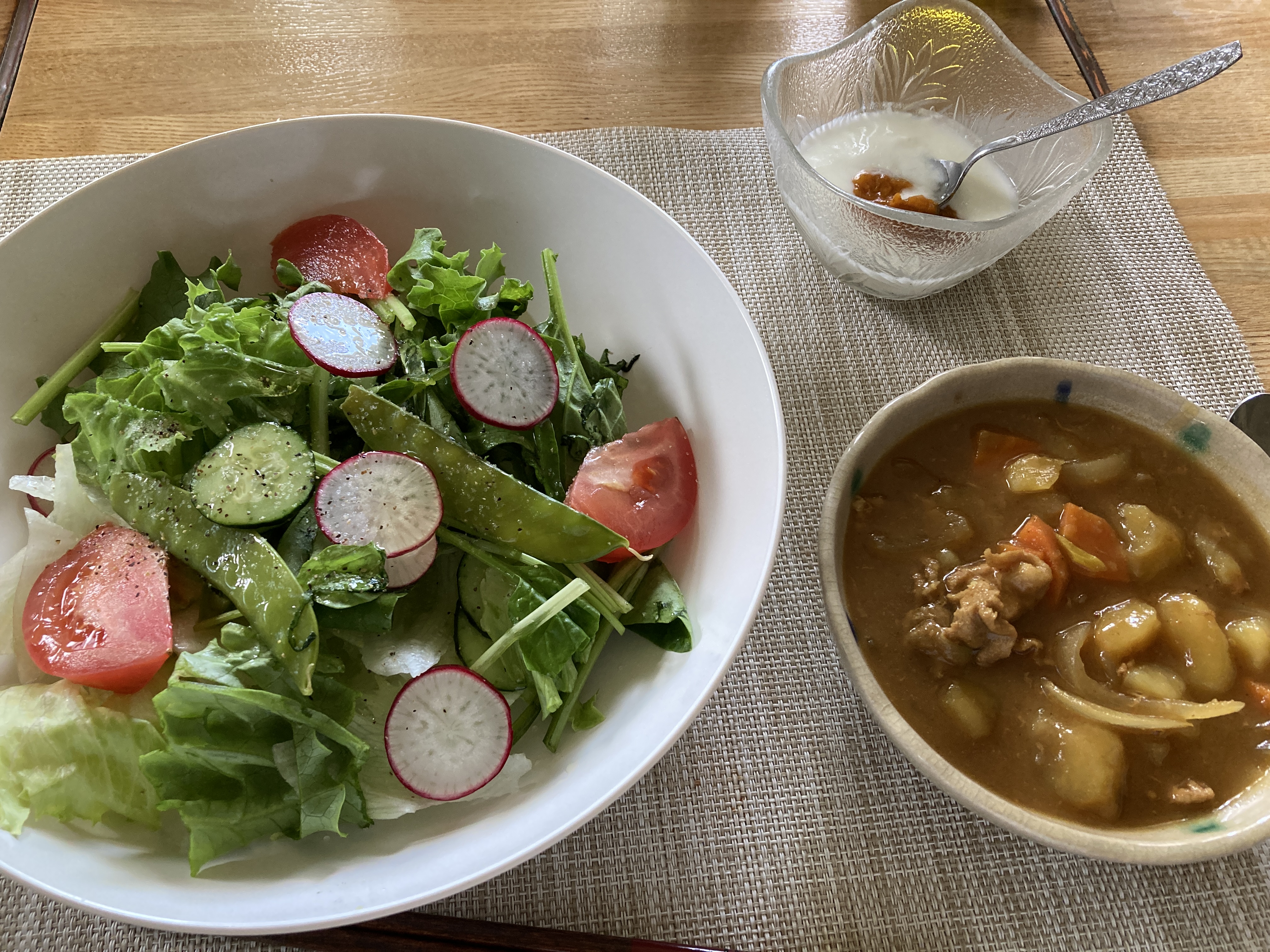 2025年6月17日blogyoko いよいよ グリーンカレーが続いたのに、またカレーが 食べたくてライスがない朝カレーです。 最後のじゃがいものです。 菜園のじゃがいもはまだ先なので、いよいよ 購入しないとで〜す。
