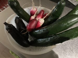 2025年6月17日blogyoko 畑を 相棒が帰宅したので畑の様子見です。 アルストロメリアが少しづつ咲いています。 白い花は? 胡瓜や二十日大根、ズッキニー、茄子を収穫し 明け方に雨が降りそうなので水かけなしで 畑を後にで〜す。