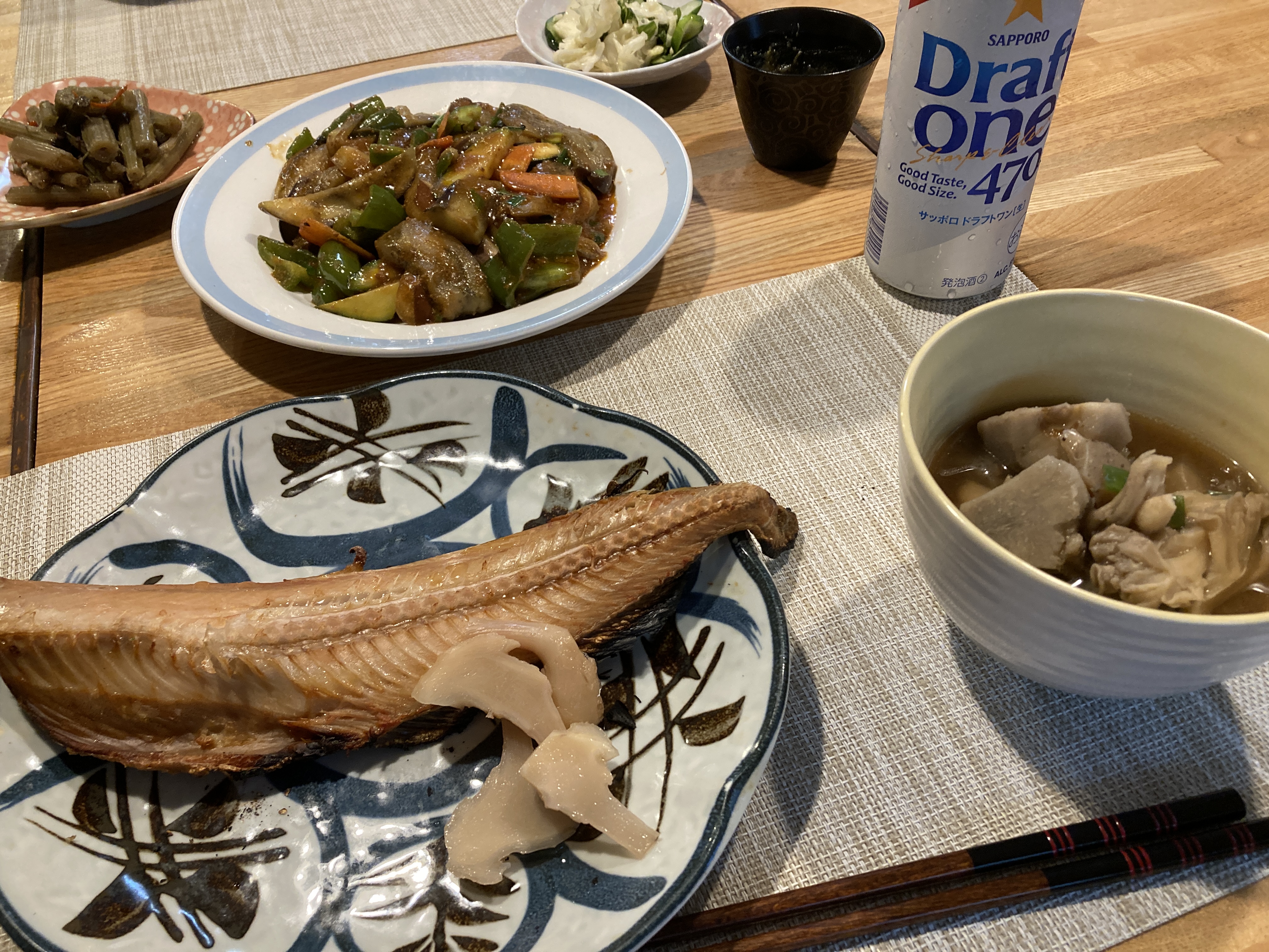 2025年6月17日blogyoko 芋煮 干物と麻婆茄子&芋煮。 我が家の菜園のネギがまだ育たないので 前回購入した時に、固くて味もイマイチ だったので芋煮のネギは万能ネギ使用です。 里芋も冷凍保存で小さな物ばかりですが、 暑い中、ふ〜ふ〜しながら食べていま〜す。