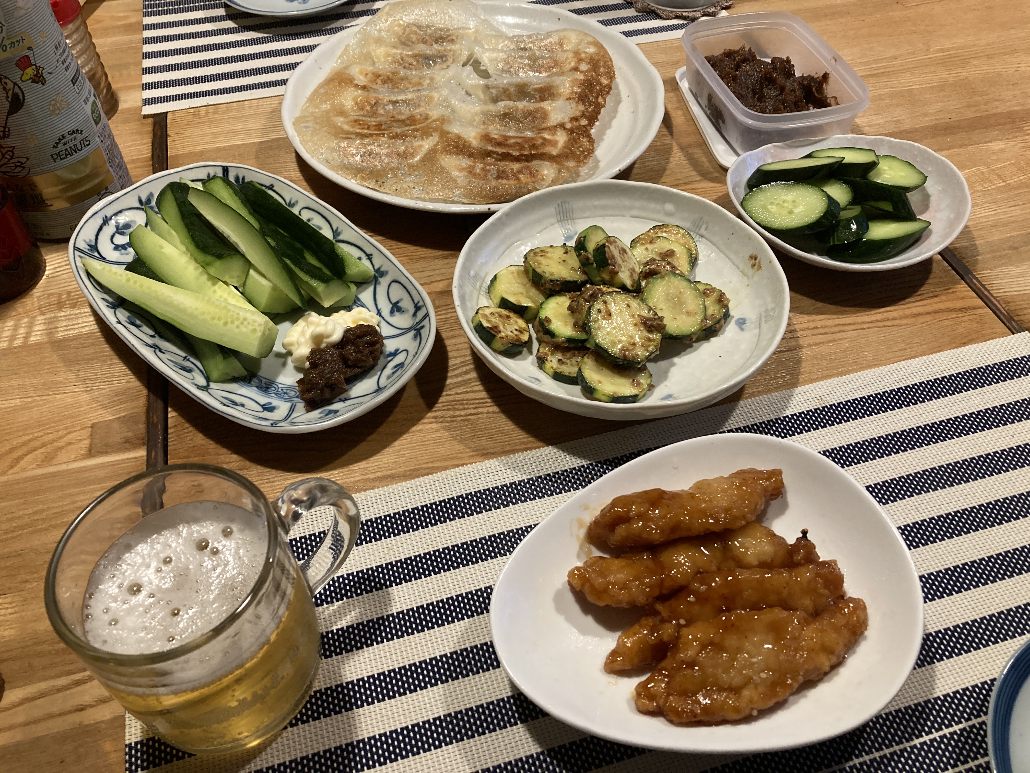 2025年6月29日blogyoko 既製品より 疲れてしまったので夕食は手抜き。 餃子とズッキニーのマスタード炒め&チキンの 黒酢あえ。 相棒、チキンを一口食べて、後は口にせず。 手抜きしようとスーパーから購入ですが、やはり 既製品とわかるようです。 手料理が少しぐらい不味くても、既製品より マシなようで〜す。