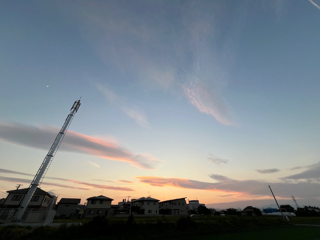 7時過ぎの夕焼けですが、まだまだ青空で〜す。
