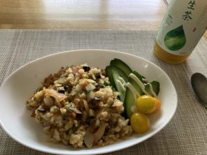 バシャバシャかけてのピラフで〜す。
