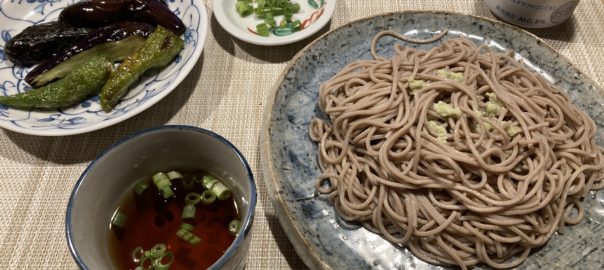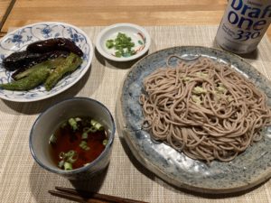 素揚げの茄子と万願寺で蕎麦の
