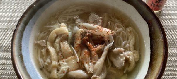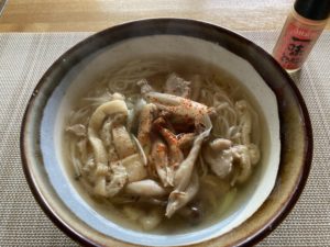 ではと、タレに鶏肉、ネギ、しめじ、油揚げ